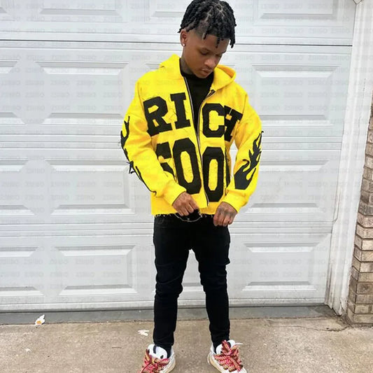 New Zipper Hoodie Vintage Letter Patch Pattern Embroidery Longsleeved Hooded Jacket Top Kpop Street Fashion Sweatshirt Women Men