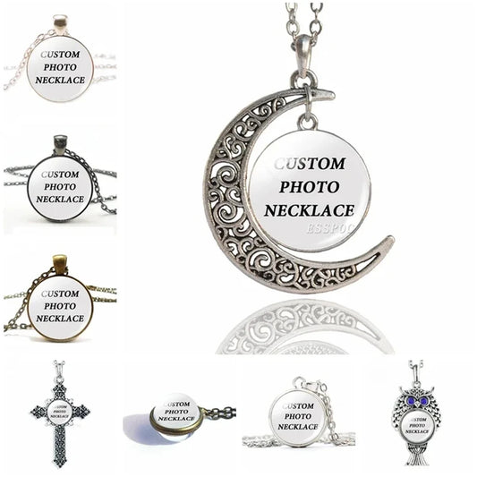 Personalized Customized Photo Necklace Circular Crescent Cross Spherical Owl with a Variety of Choices Friend Gifts