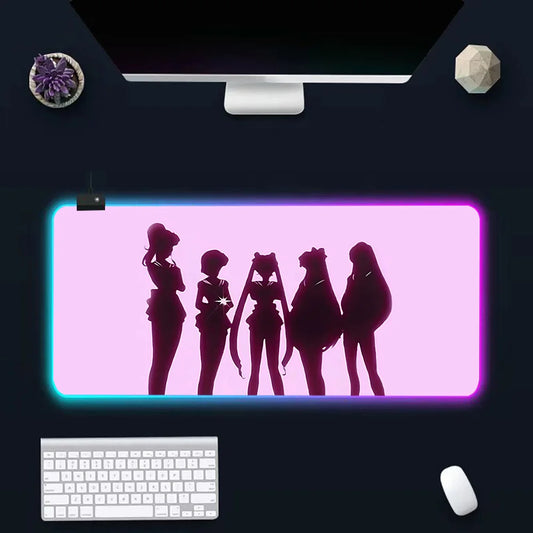 Pink Girl Cartoon Sailors Moons RGB Pc Gamer Keyboard Mouse Pad Mousepad LED Glowing Mouse Mats Rubber Gaming Computer Mausepad