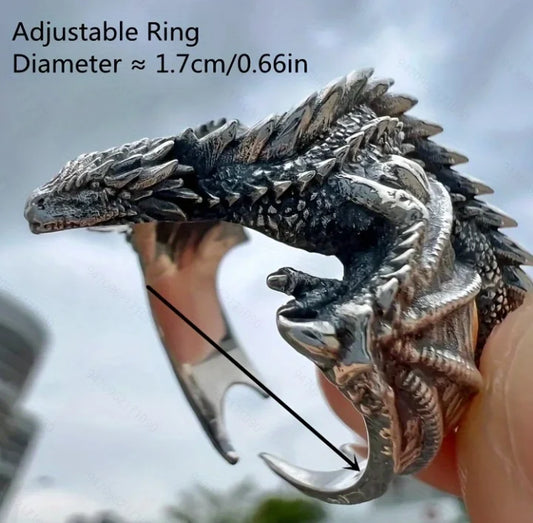 Retro Silver Color Winged Dragon Ring Symbolizes Power, Domineering and Adjustable Opening Ring, Jewelry Accessory Gift