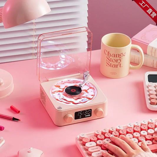 Retro Vintage Waves Vinyl Player Bluetooth Speaker with White Noise Portable Mini Wireless Sleep Aid Turntable Speaker with AUX