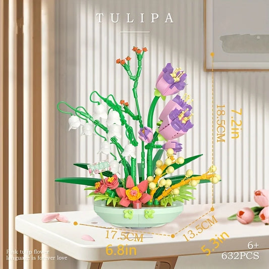 Self-assembling building blocks eternal life fragrant spring potted flower bouquet tide play girl series table decoration small