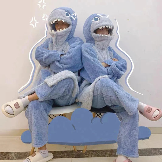 Regular price $99.00 USDRegular priceUnit price / per$34.00 USDSale price $99.00 USDShark Costume Blue Flannel Pajamas Set With Pants Unisex Women Men Nightgown Two Pieces Set Warm Coral Fleece Sleepwear PJS Set