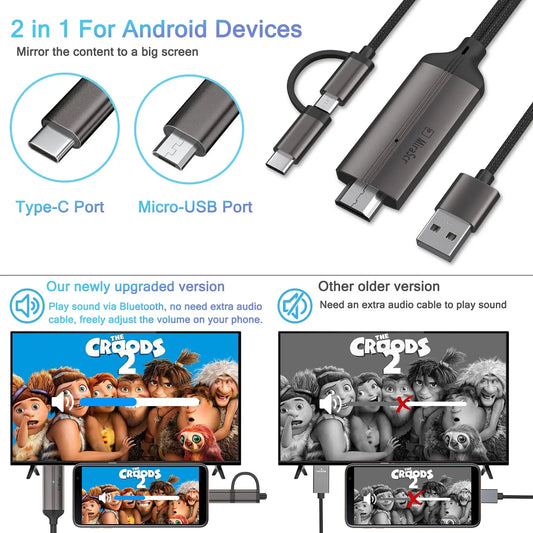 Type-C/Micro-USB Male to 1080P HD Port Display Cable with Charging Cord for Android Smartphone Tablet to HDTV Monitor Projector