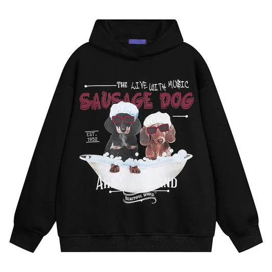 Regular price $115.00 USDRegular priceUnit price / per$39.00 USDSale price $115.00 USDVintage American Style Men's Creative Cool Dog Print Loose Fit Grey Fleece Lined Hooded Sweatshirt Couple Model Casual Wear