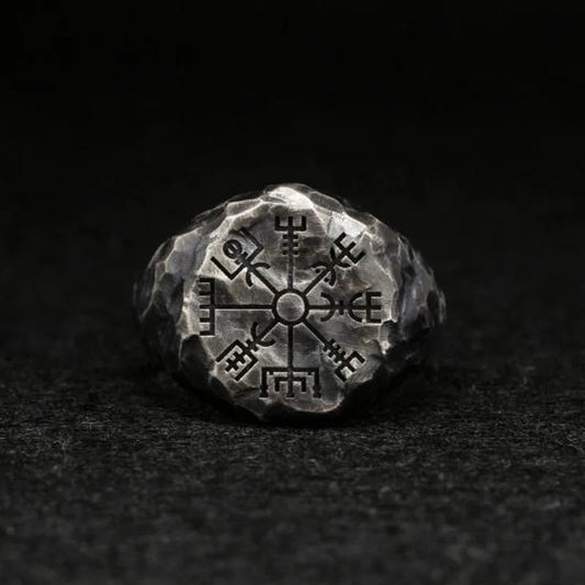 Vintage Scandinavian Handmade Engraved Compass Ring Personalized Thai Silver Open Ring
