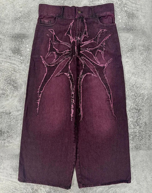 American retro high street design hip-hop trend loose straight wide-leg pants brushed patch washed distressed casual jeans