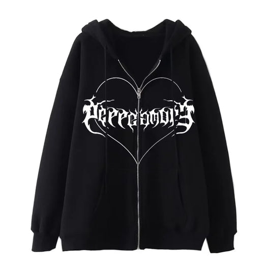 American retro street dark skeleton black fashionable loose zipper hooded sweatshirt for men and women Harajuku casual