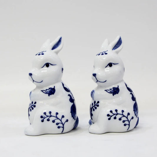Blue and White Porcelain Rabbit Sculpture Decoration Cute Animal Ceramic Crafts Office Room Ornament