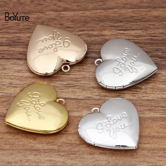 BoYuTe (10 Pieces/Lot) 29*27MM Heart Pendant I Love You Love Locket Factory Direct Wholesale Metal Brass Photo Locket Pendant