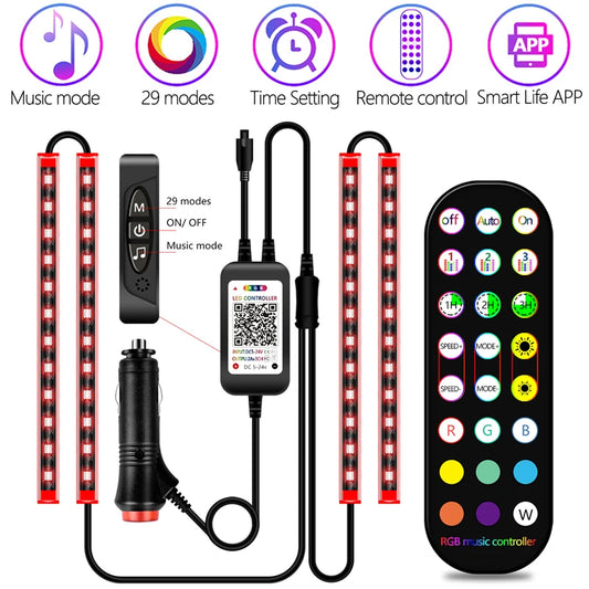 Car Foot Ambient Light RGB LED Car Interior Lights USB Cigarette Lighter Backlight Music Control Wireless App Atmosphere Lights