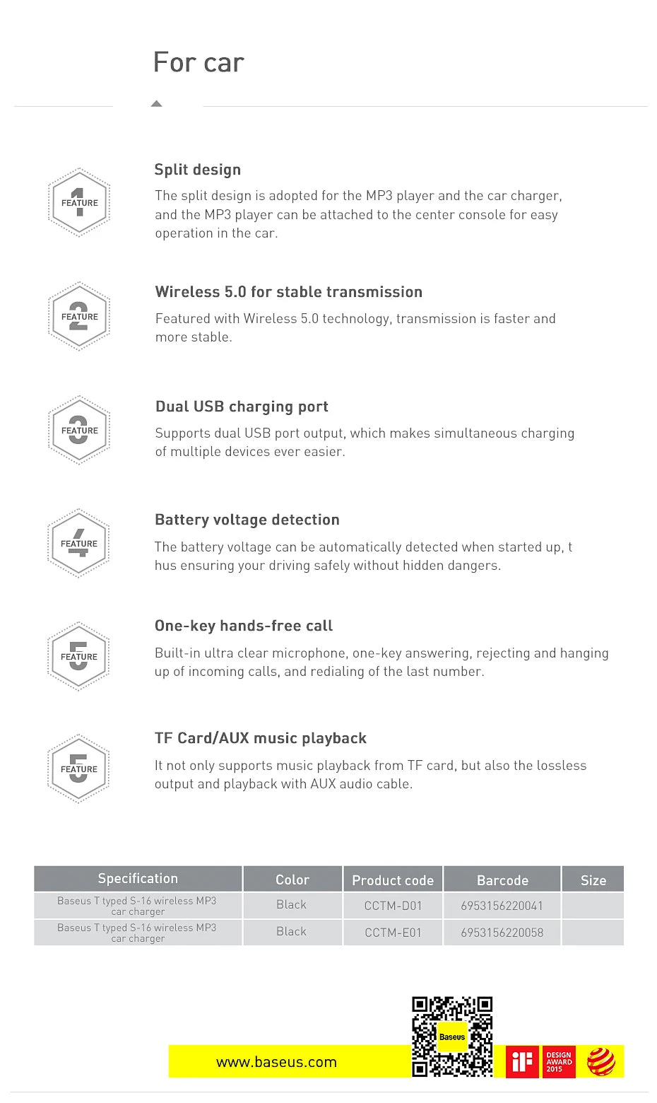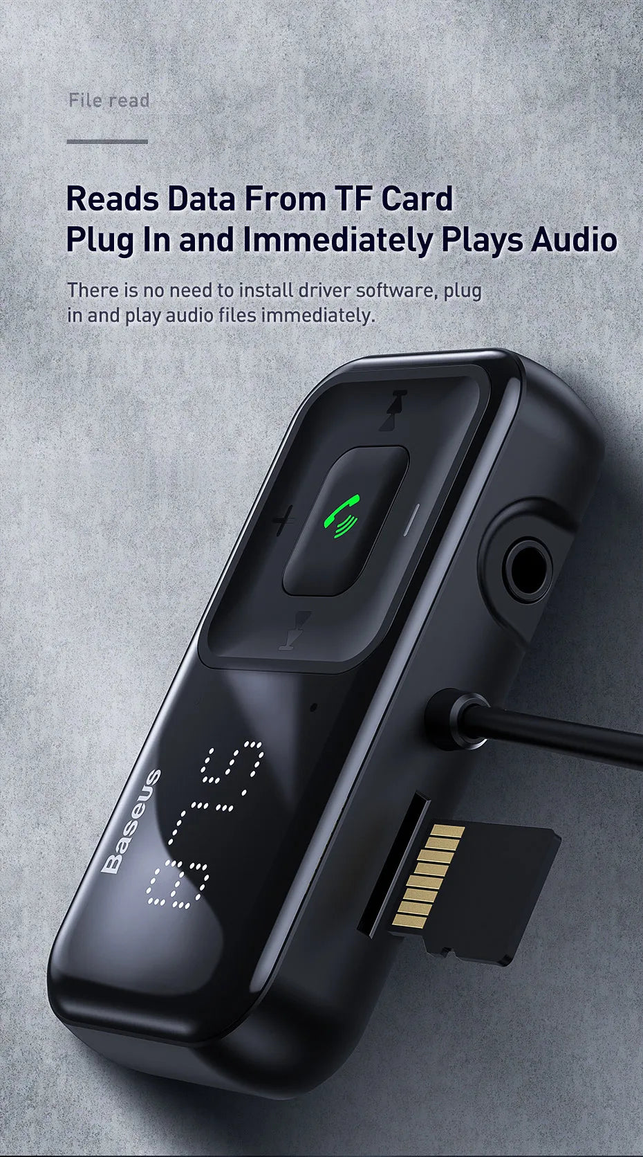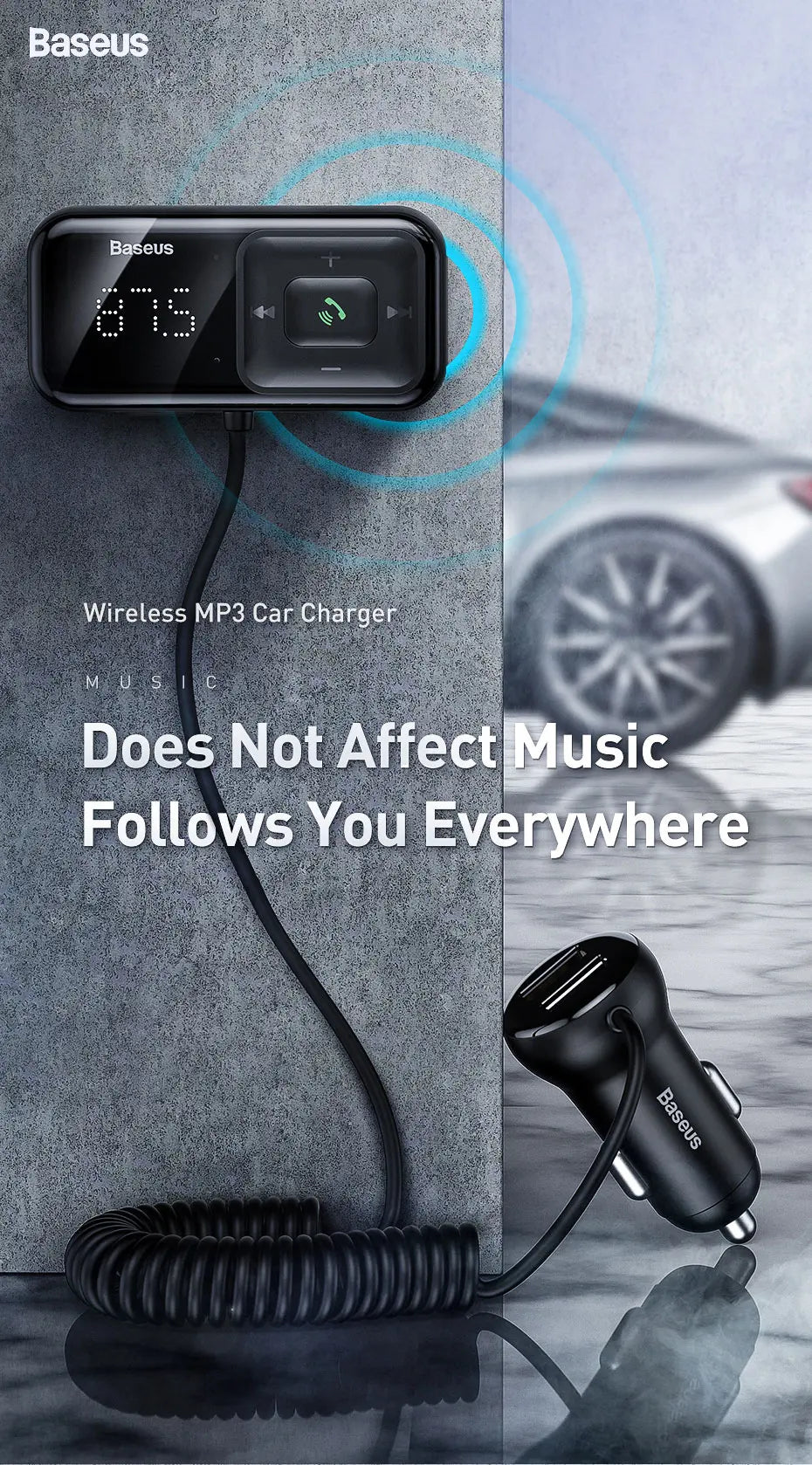Transmisor modulador FM Baseus con Bluetooth 5.0, radio FM, cargador USB de 3,1 A, kit manos libres para coche, transmisor FM de audio auxiliar inalámbrico