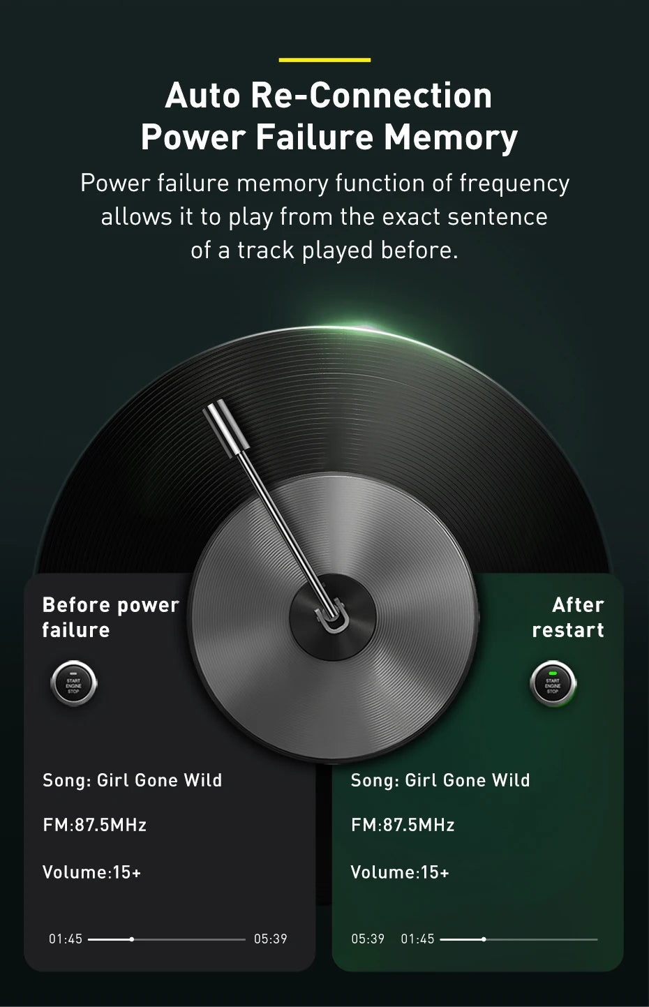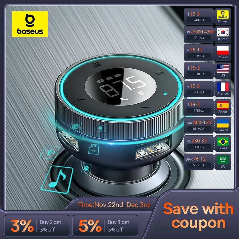 Transmisor FM Baseus para coche, adaptador de música con Bluetooth 5.0, cargador USB dual de 3,4 A, reproductor de MP3, radio, modulador FM