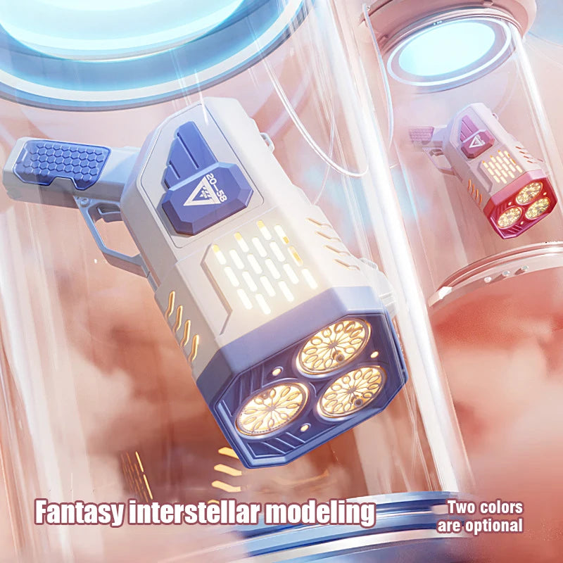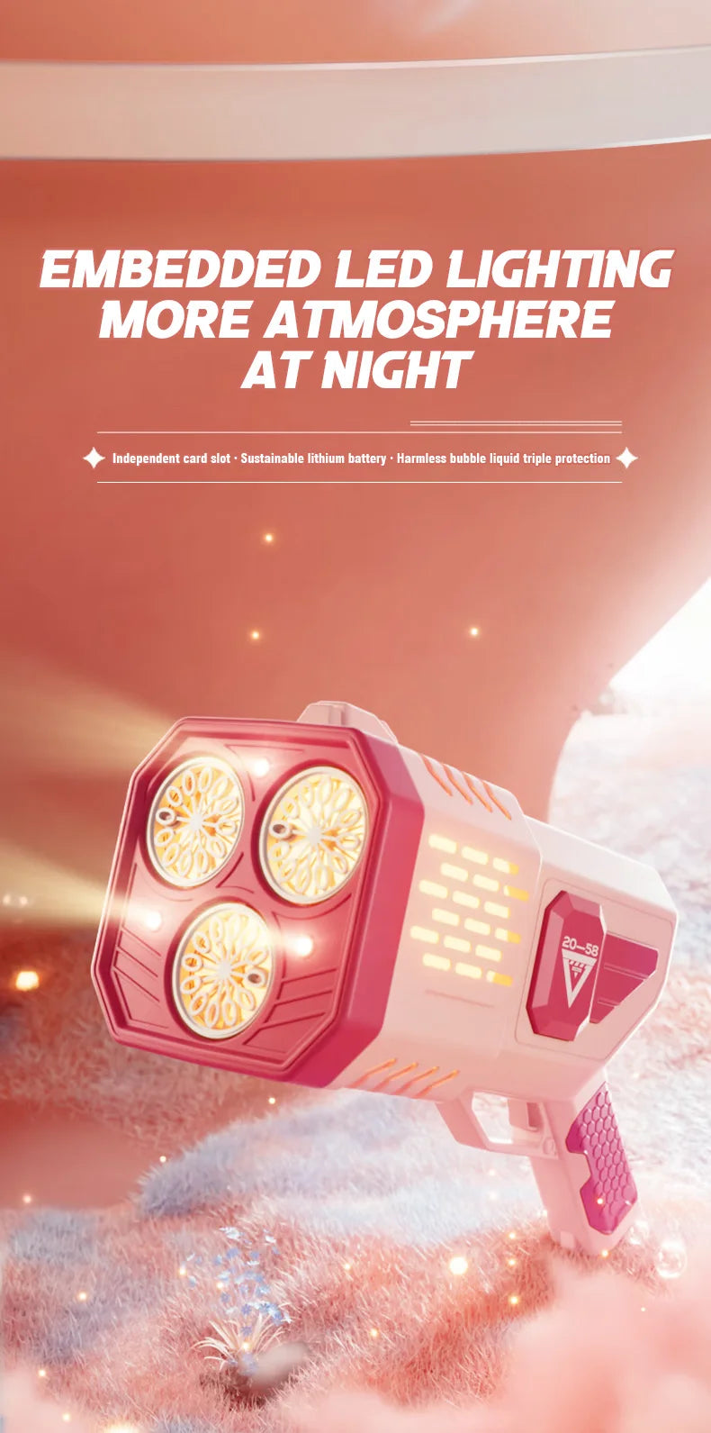 Pistola de burbujas con forma de cohete, 36 agujeros, máquina de burbujas de jabón, soplador automático con luz, juguetes para niños, regalo para el día de los niños