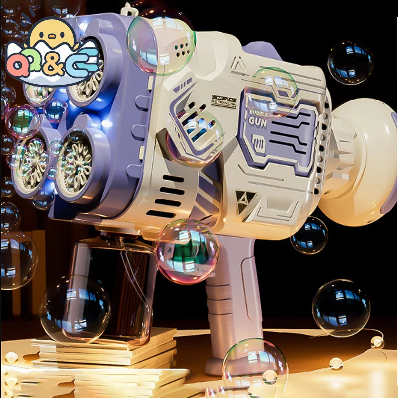 Pistolet à bulles, fusée, machine à bulles de savon, lanceur spatial électrique, cadeaux pour la fête des enfants, continue de produire des bulles avec lumière LED