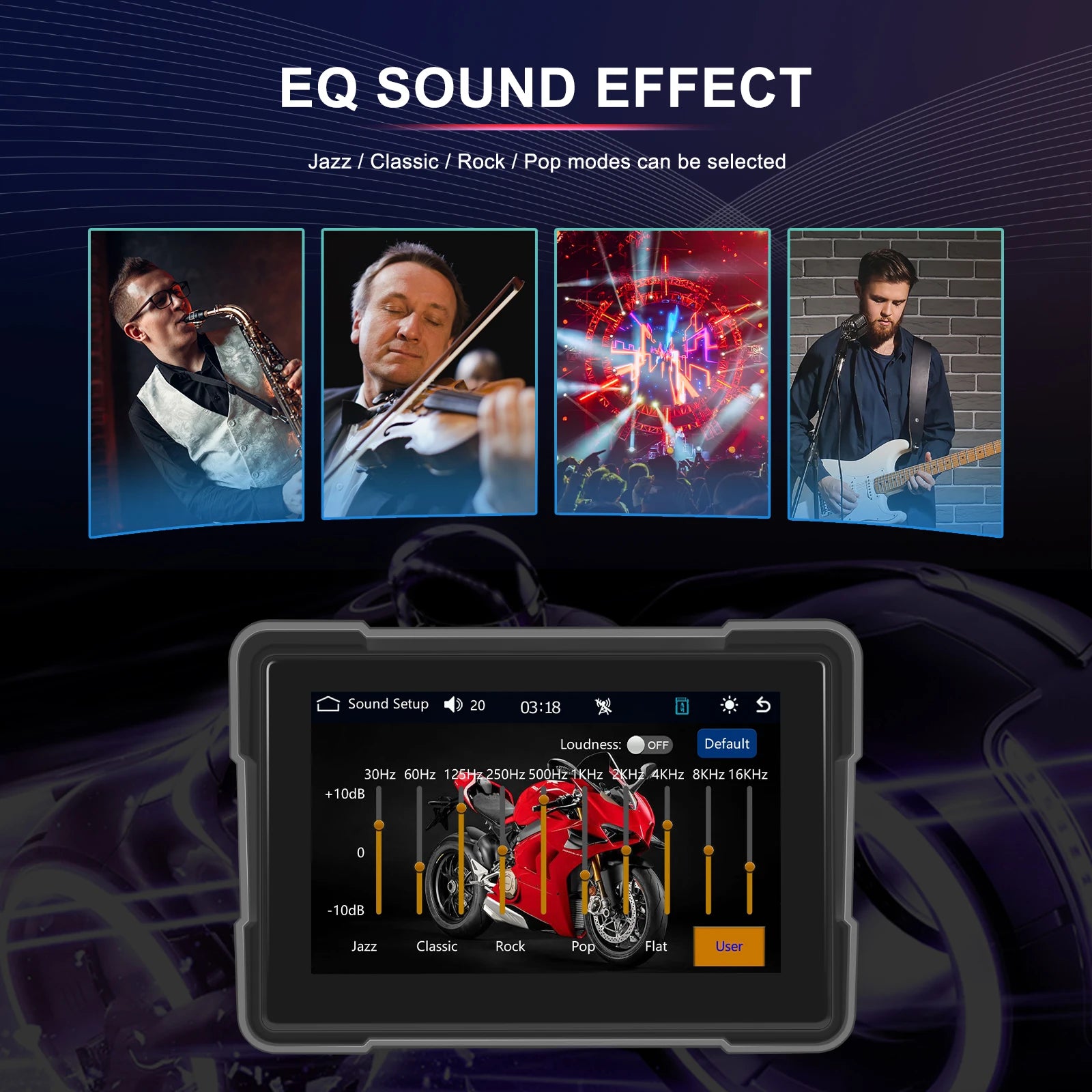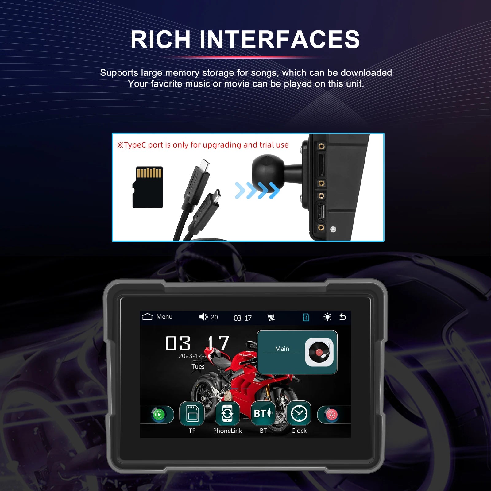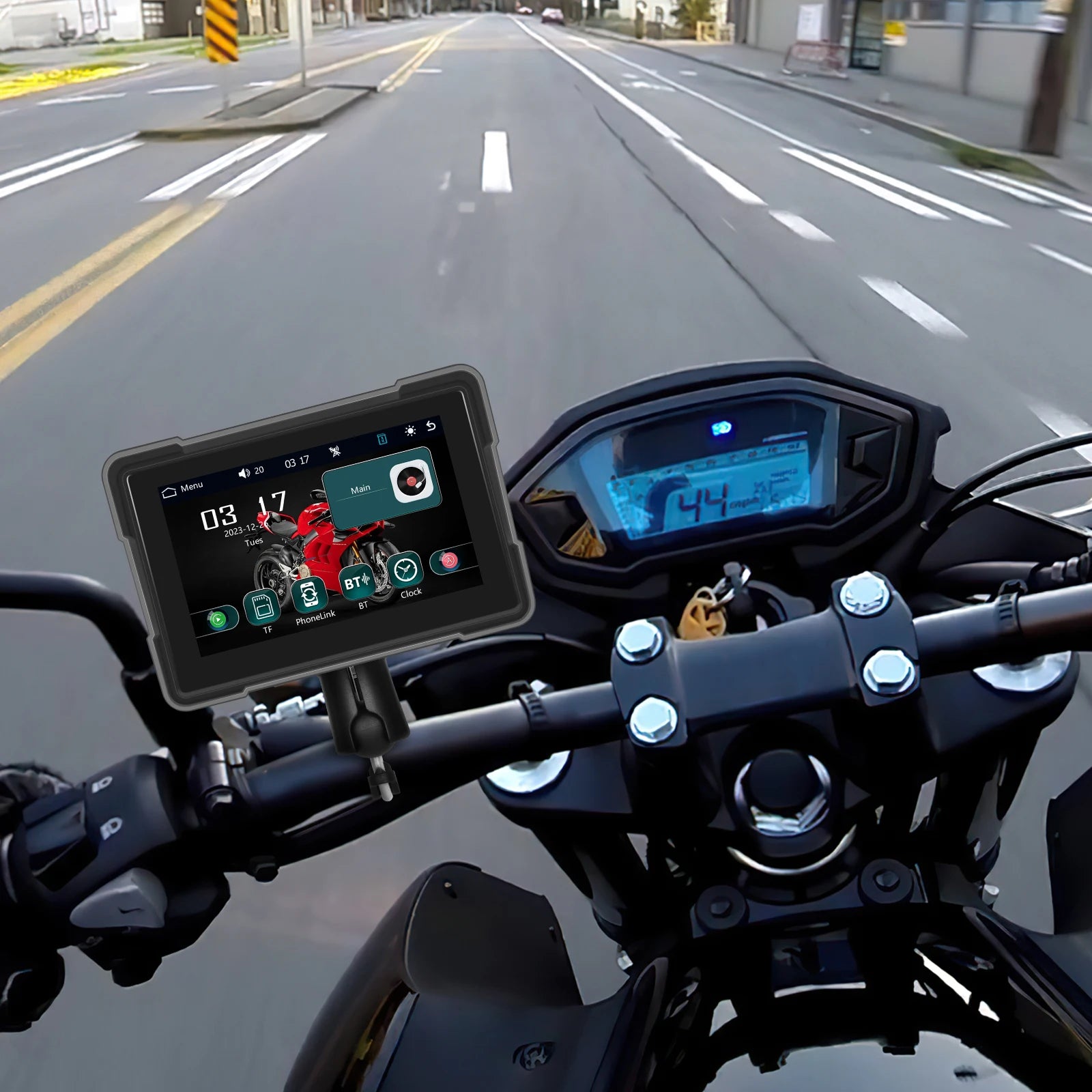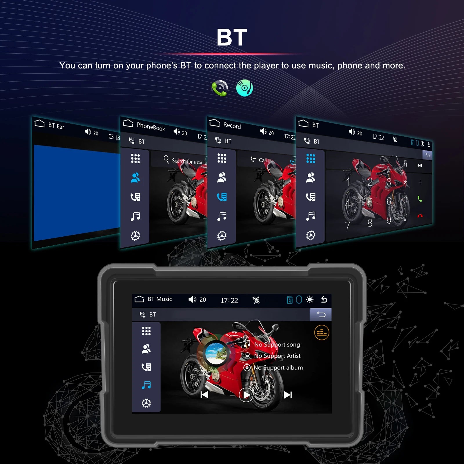 Podofo 5" Moniteur de moto Carplay Écran intelligent de voiture Portable Moto Sans fil Android Auto Navigation GPS IPX7