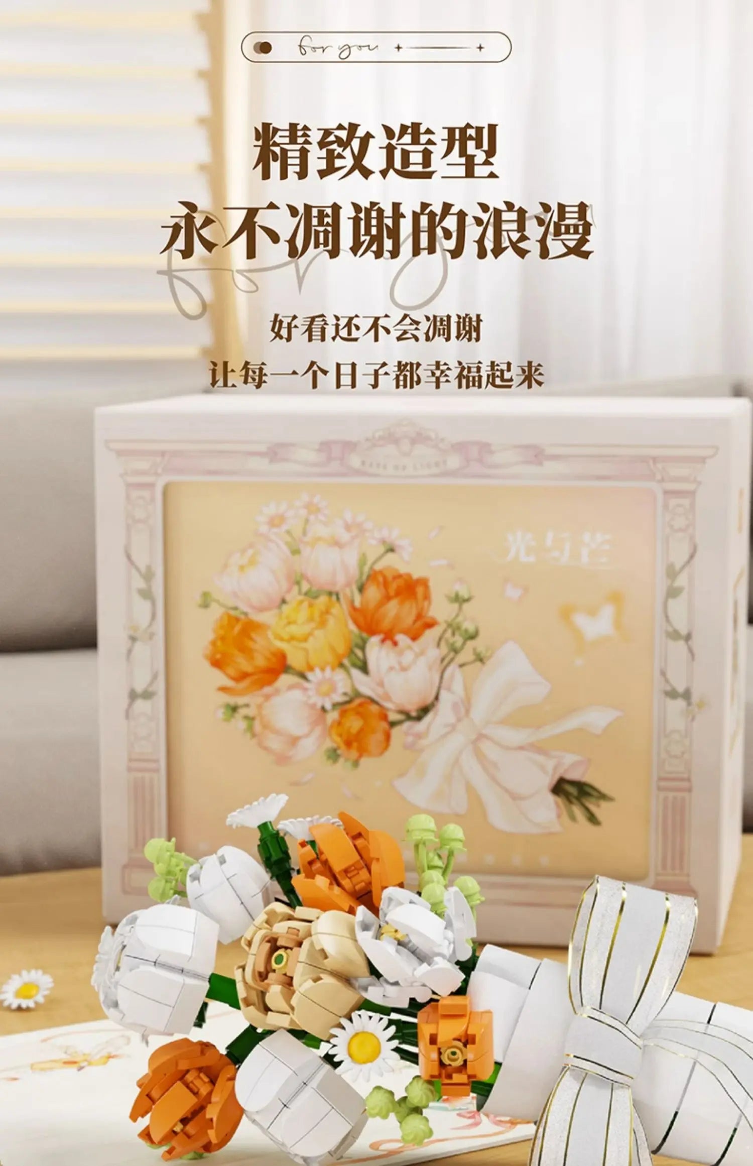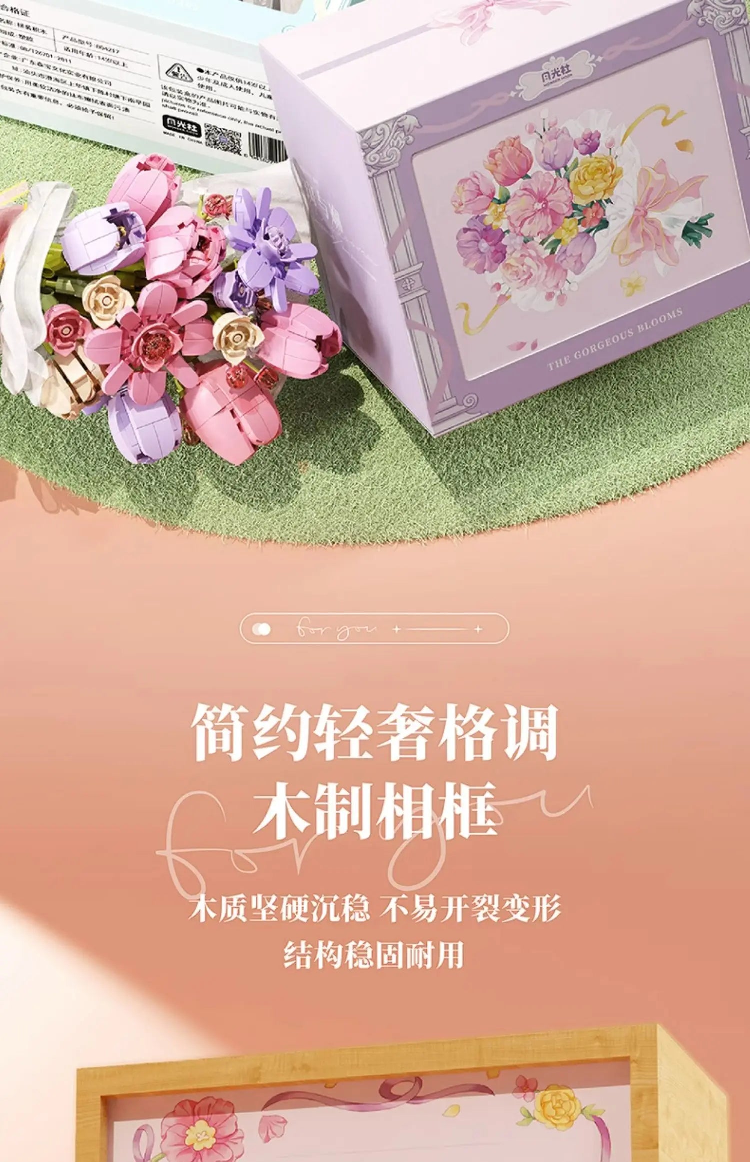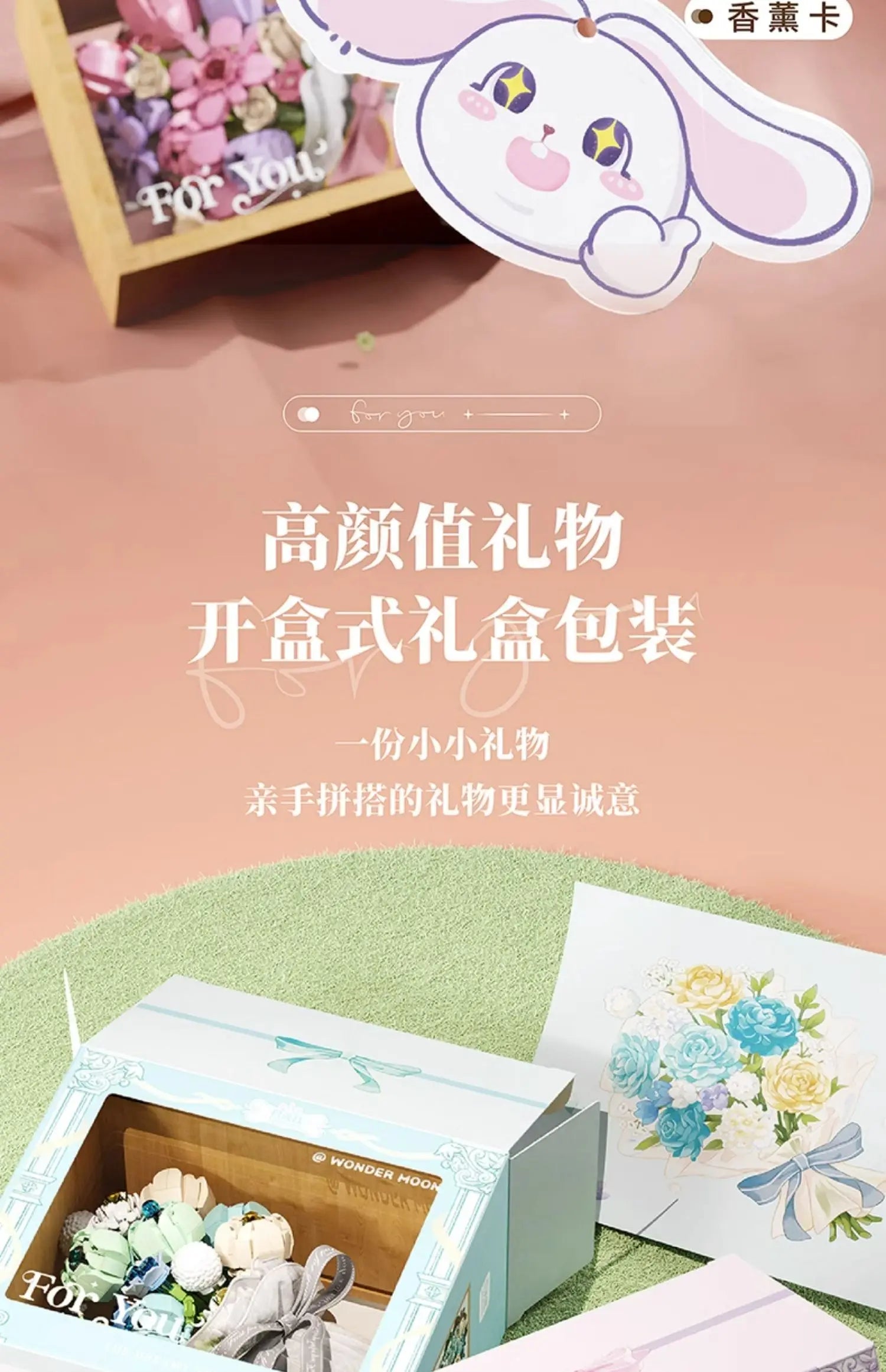Blocs de construction Wekki Bouquet de fleurs éternelles Cadre photo Puzzle à monter soi-même Jouet créatif Cadeau d'anniversaire Collection Ornement