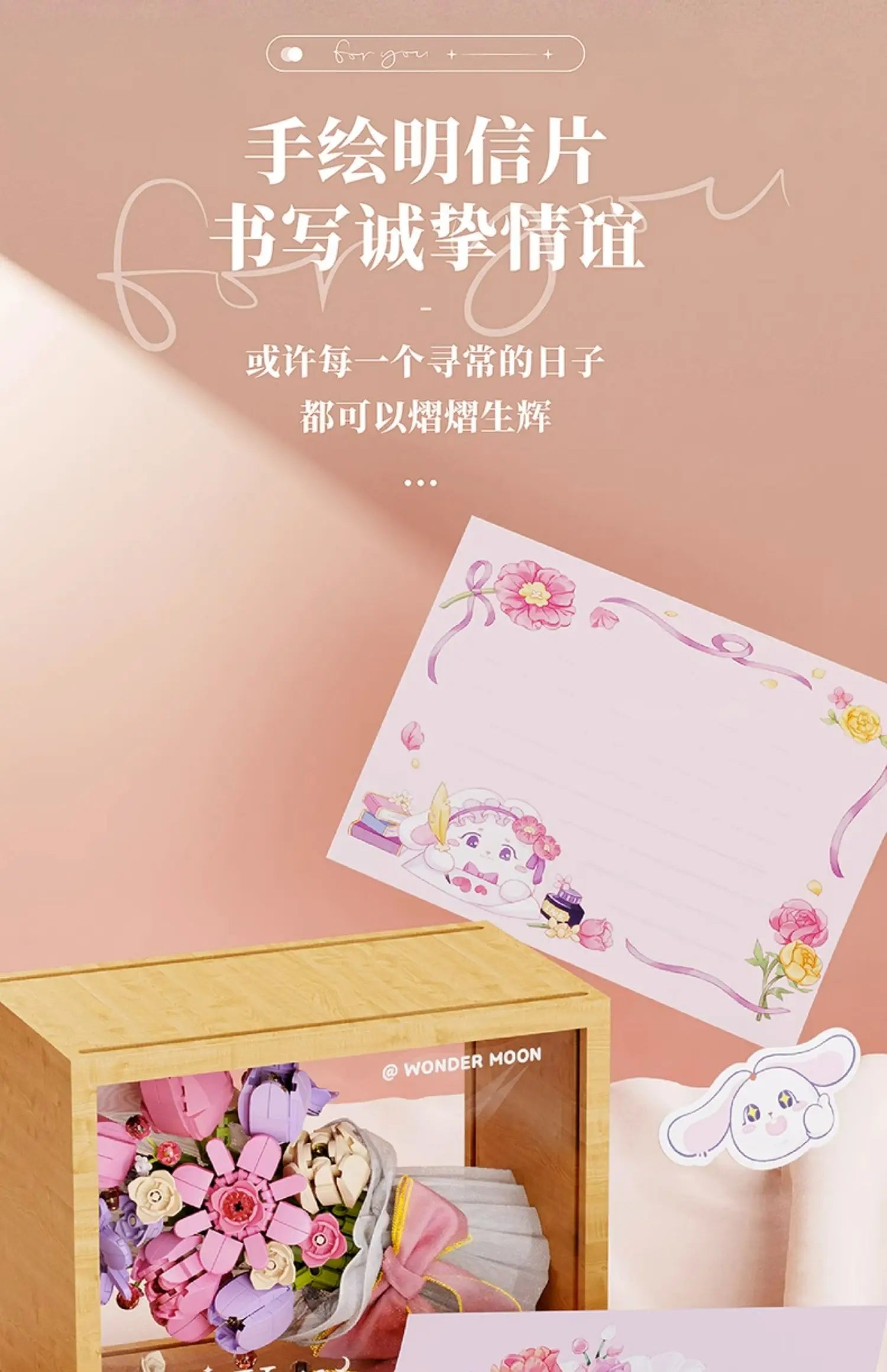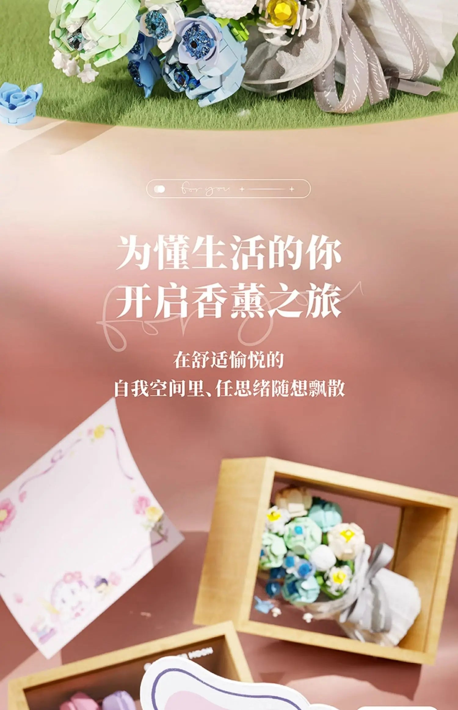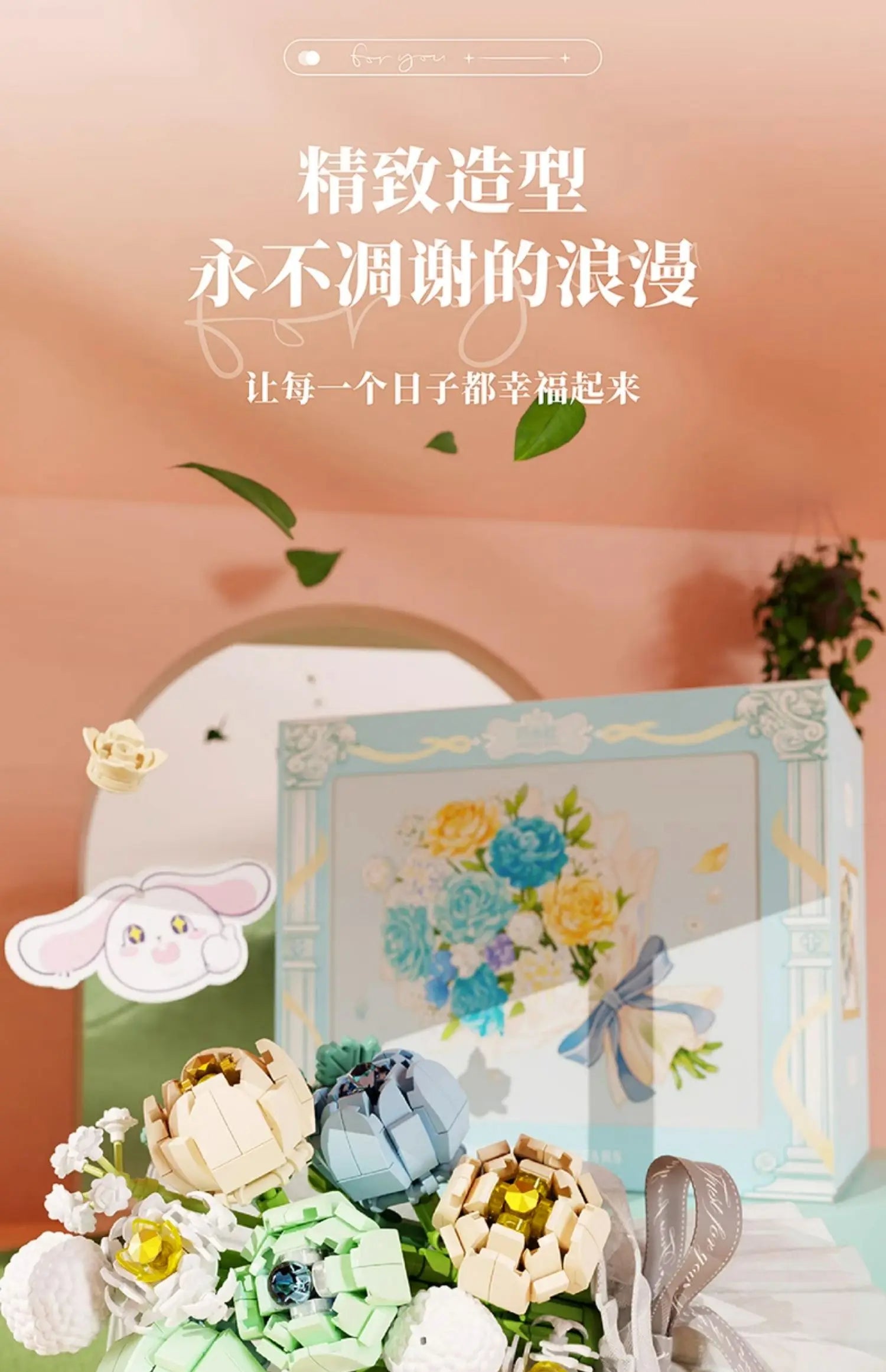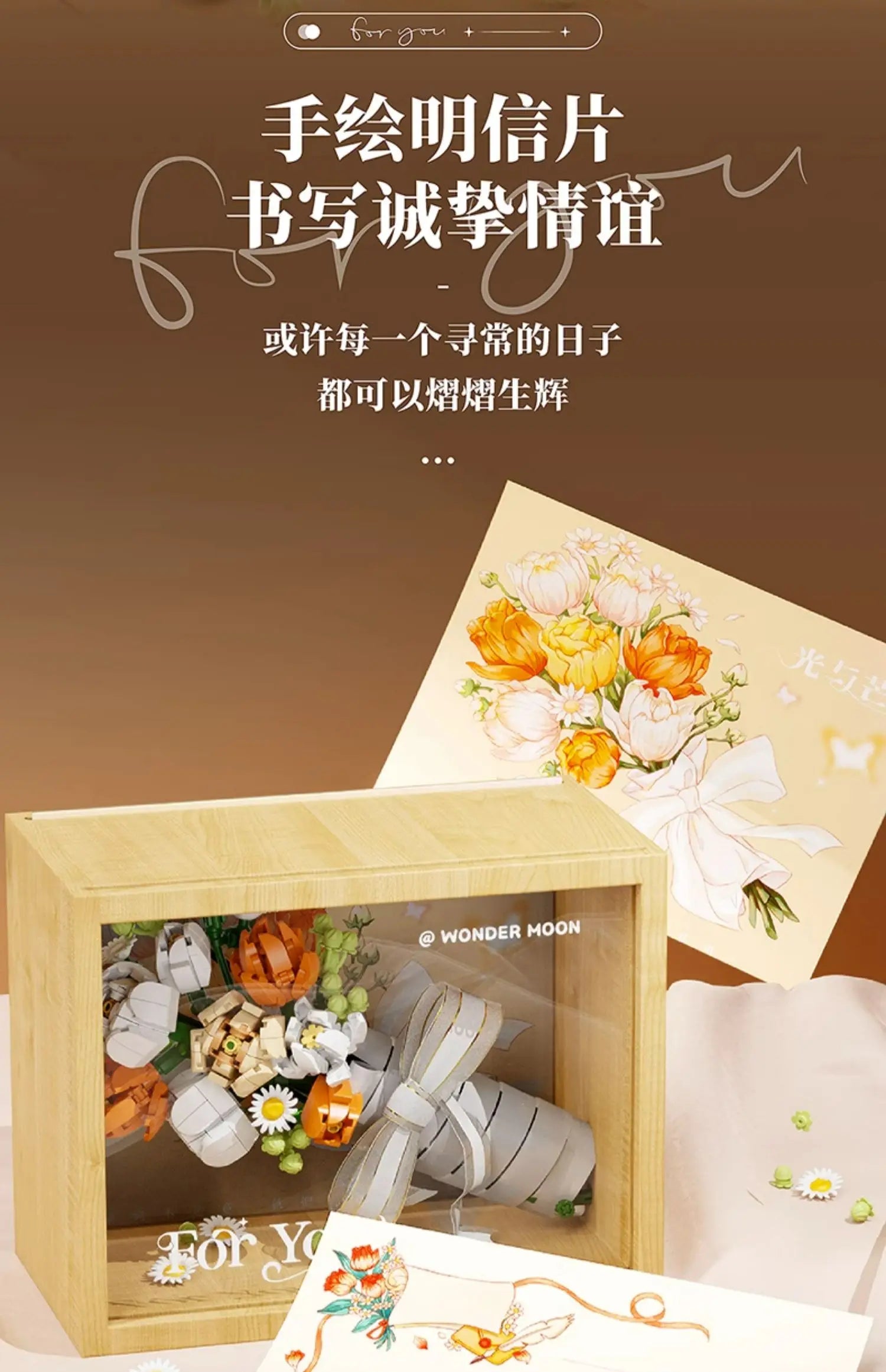 Blocs de construction Wekki Bouquet de fleurs éternelles Cadre photo Puzzle à monter soi-même Jouet créatif Cadeau d'anniversaire Collection Ornement