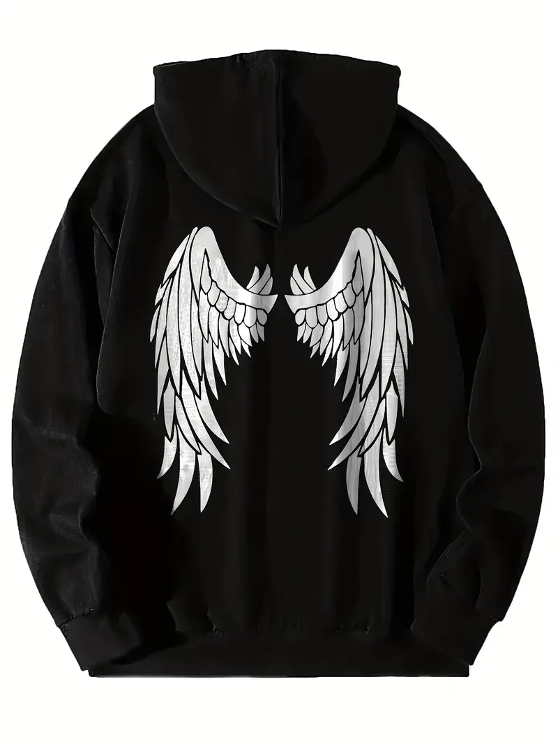 Sweat à capuche à poche kangourou imprimé ailes, sweat-shirt à manches longues, vêtements décontractés pour femmes