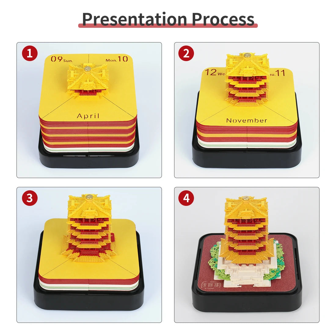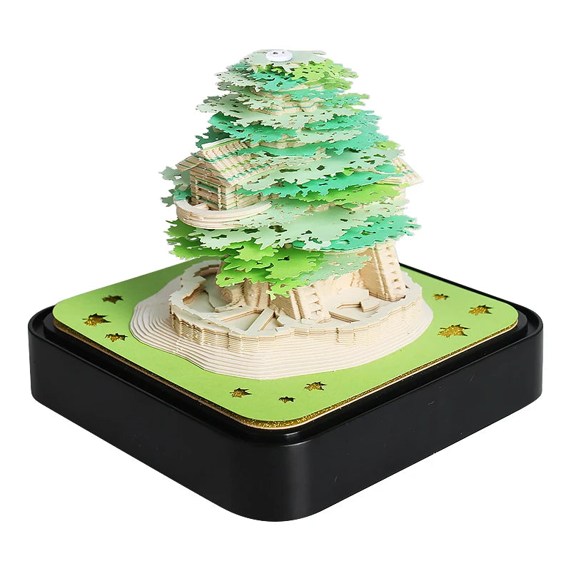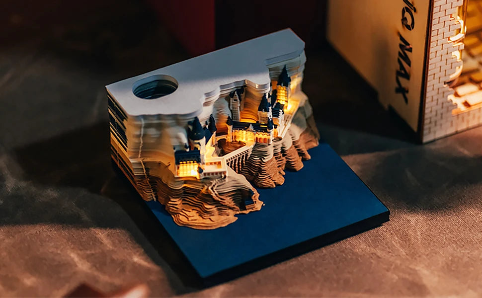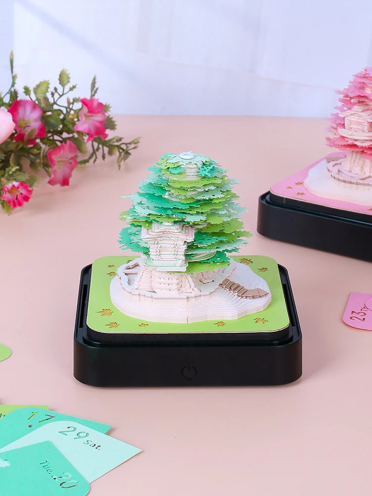 2024 Calendar Memo Pad With LED Lights,Time Piece Calendar,Creative Desk Calendar DIY Paper Carving Art Craft Desktop Decoration