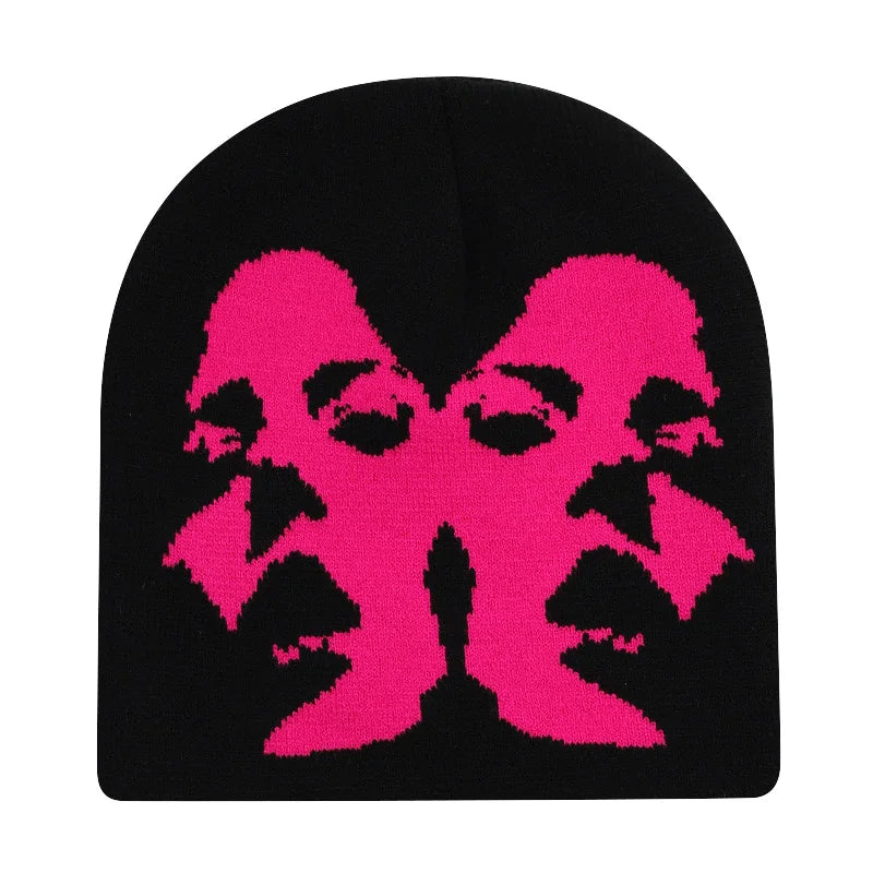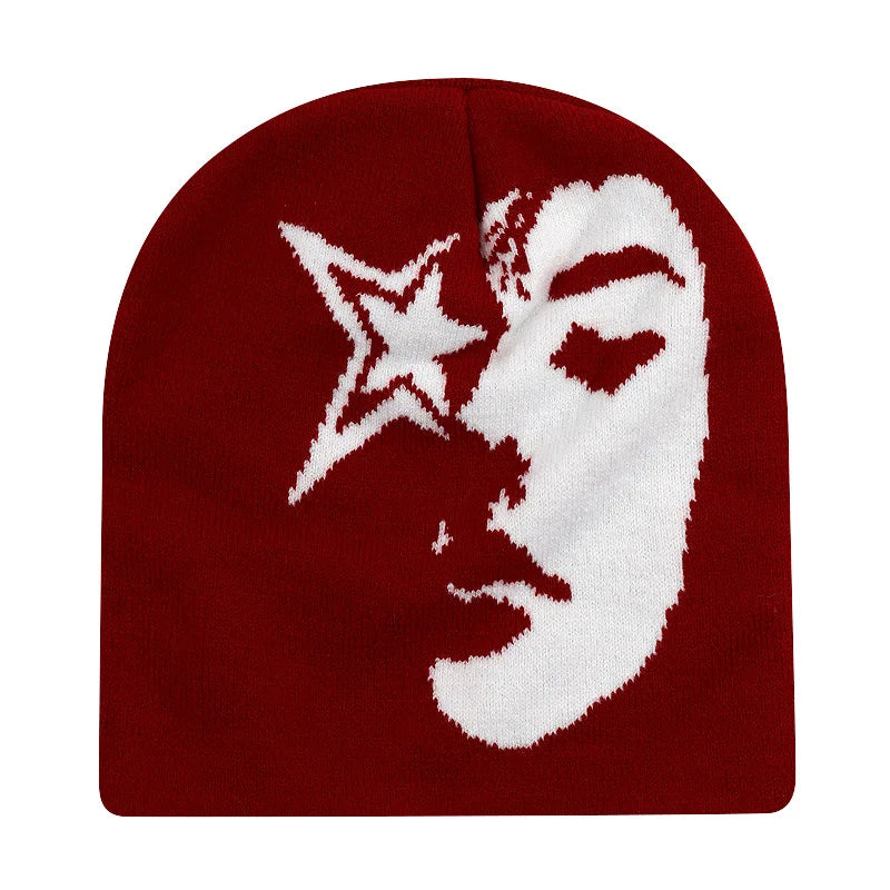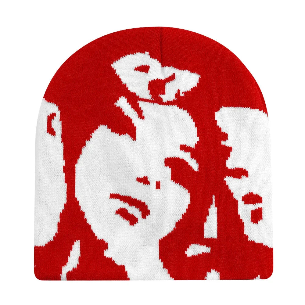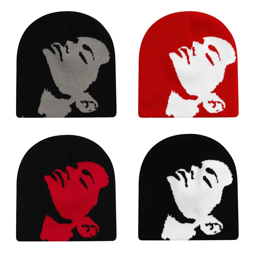 2024 Fashion Face Pattern Beanies Hip Hop Y2K Street Hat Women Men Dance Fire Hell Burn Winter Warm Knitted Bonnet Skiing Hat