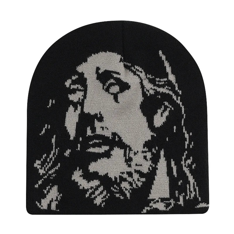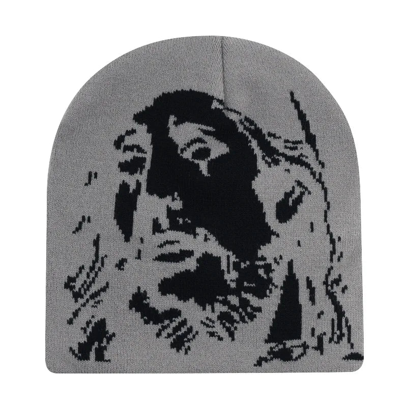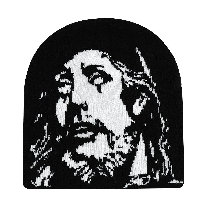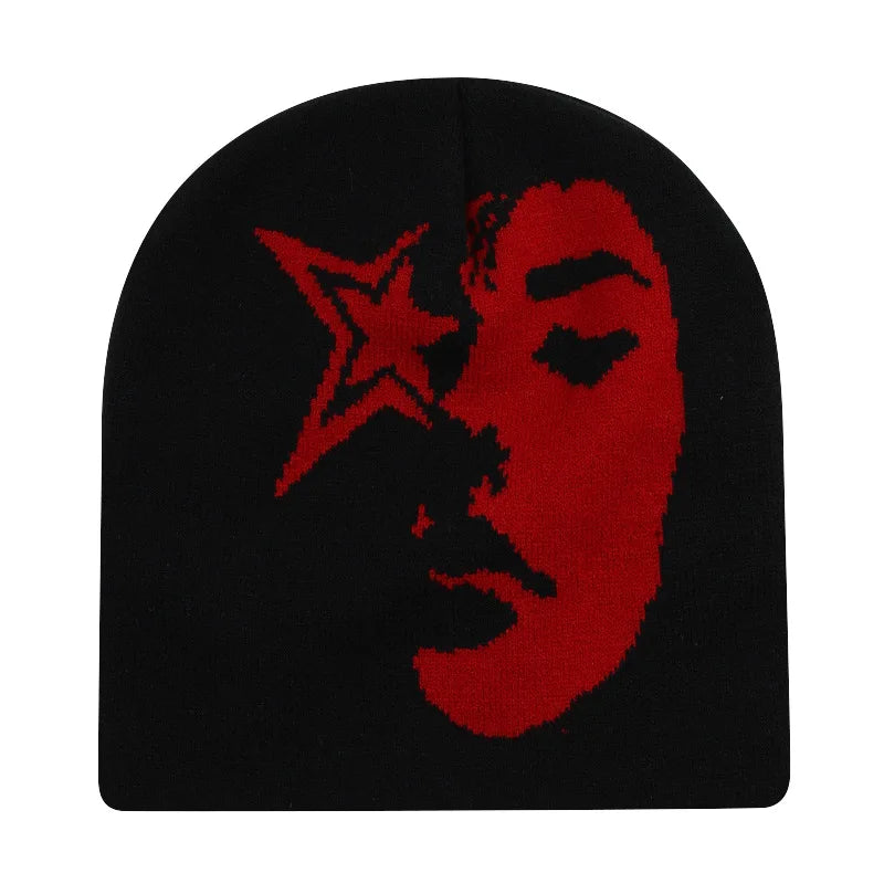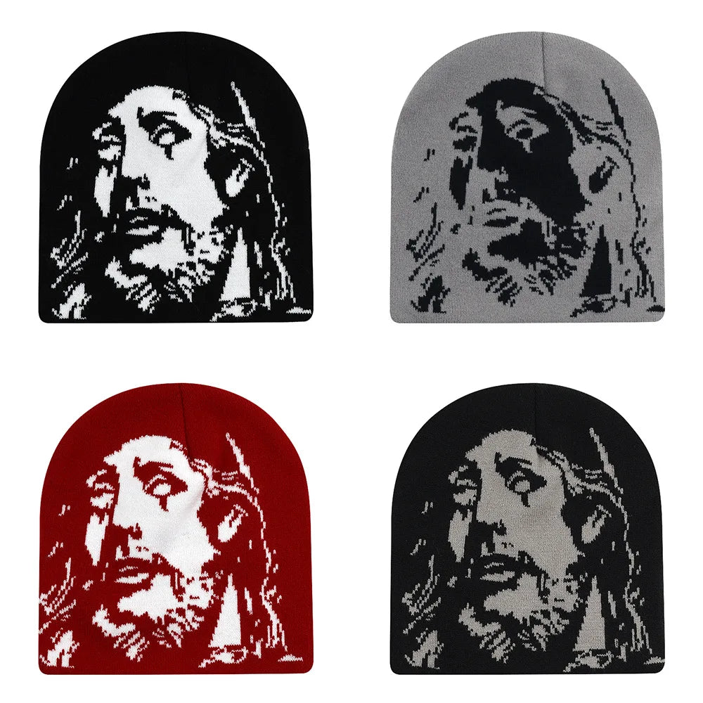 2024 Fashion Face Pattern Beanies Hip Hop Y2K Street Hat Women Men Dance Fire Hell Burn Winter Warm Knitted Bonnet Skiing Hat