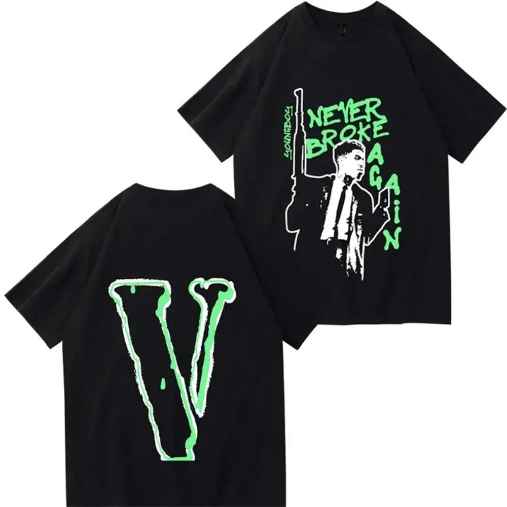 2024 Summer New Sports T-shirt 100% Cotton 2 English Letter Printing High Quality Round Neck Street Clothing Top Casual Clothing