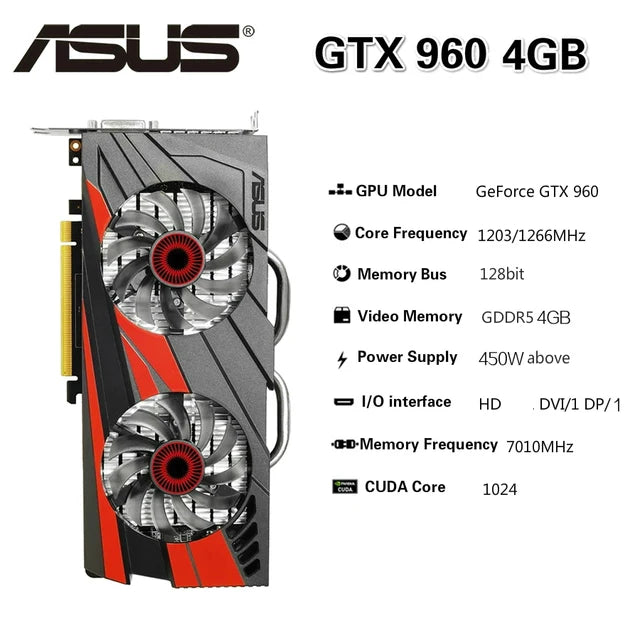 2024 Used ASUS Graphic Card GTX 960 4GB 128Bit GDDR5 Video Cards GTX960 GPU