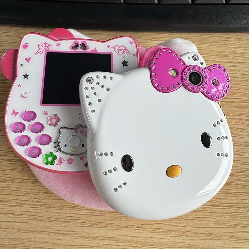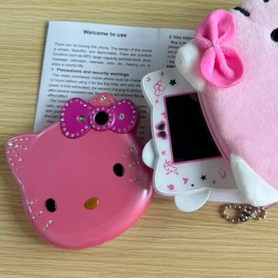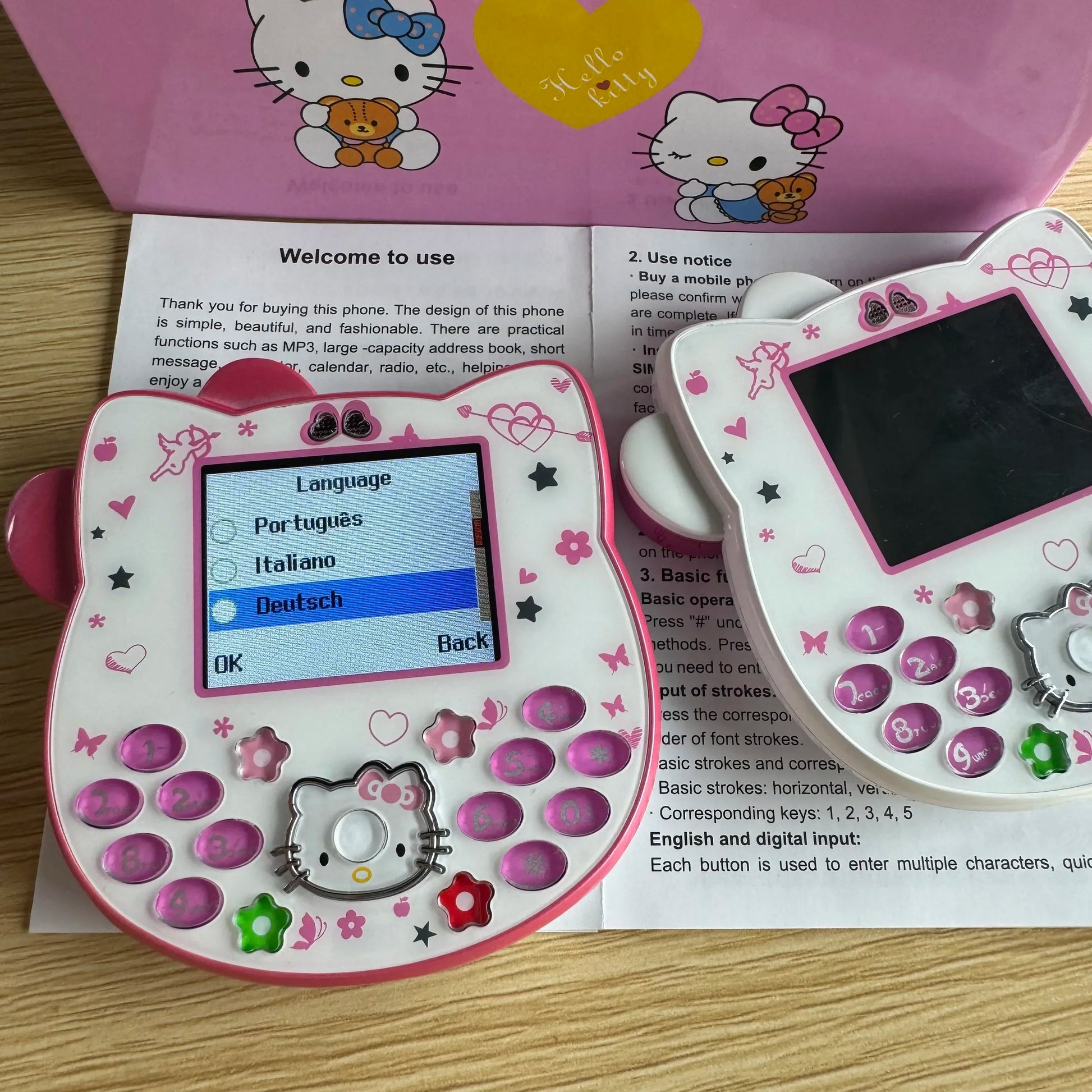 2024Hot Sanrio Hello Kitty Kawaii Mini Flip Phone I68 Girl Mobile Phone Student Anime Phone Music Mobile Phone Kid Birthday Gift