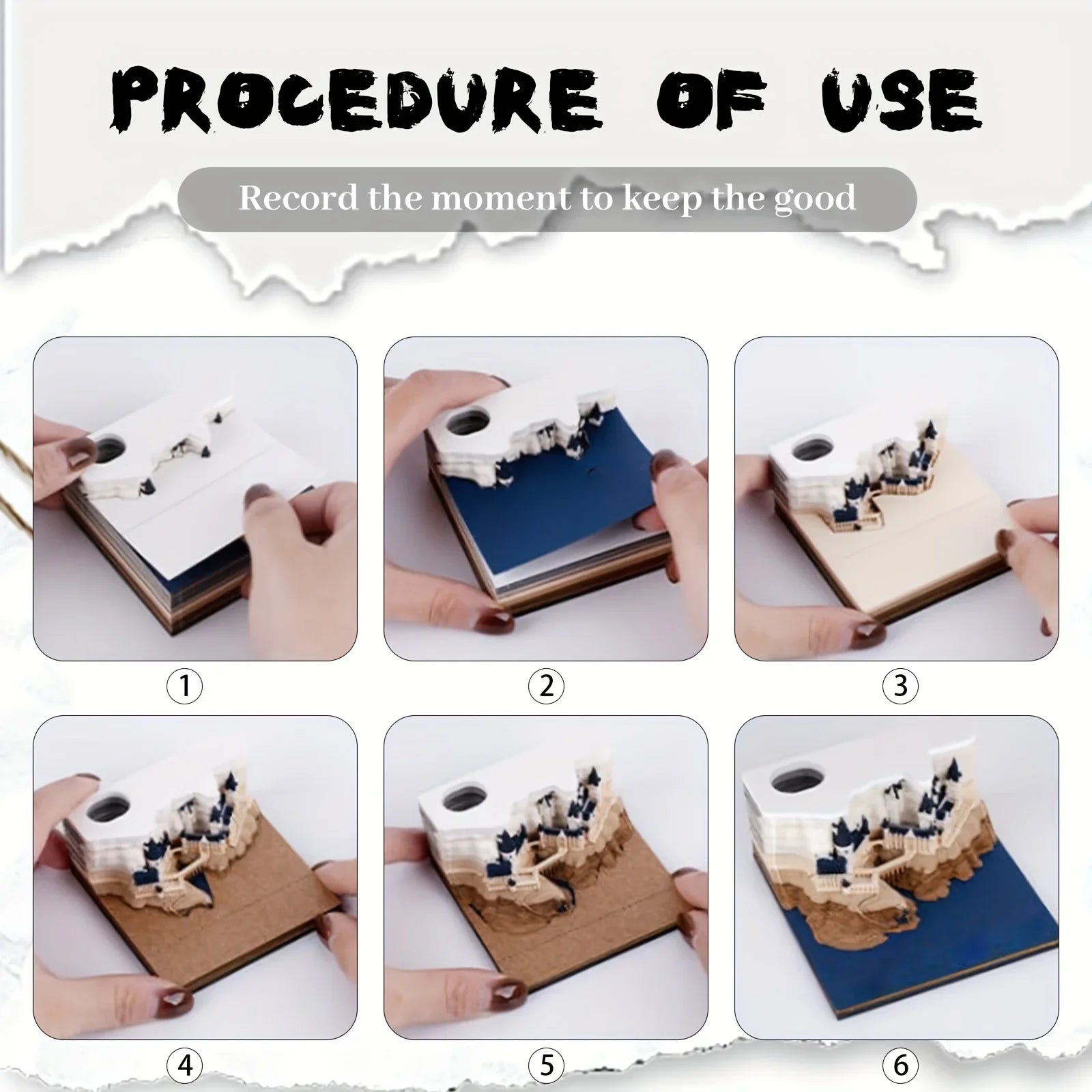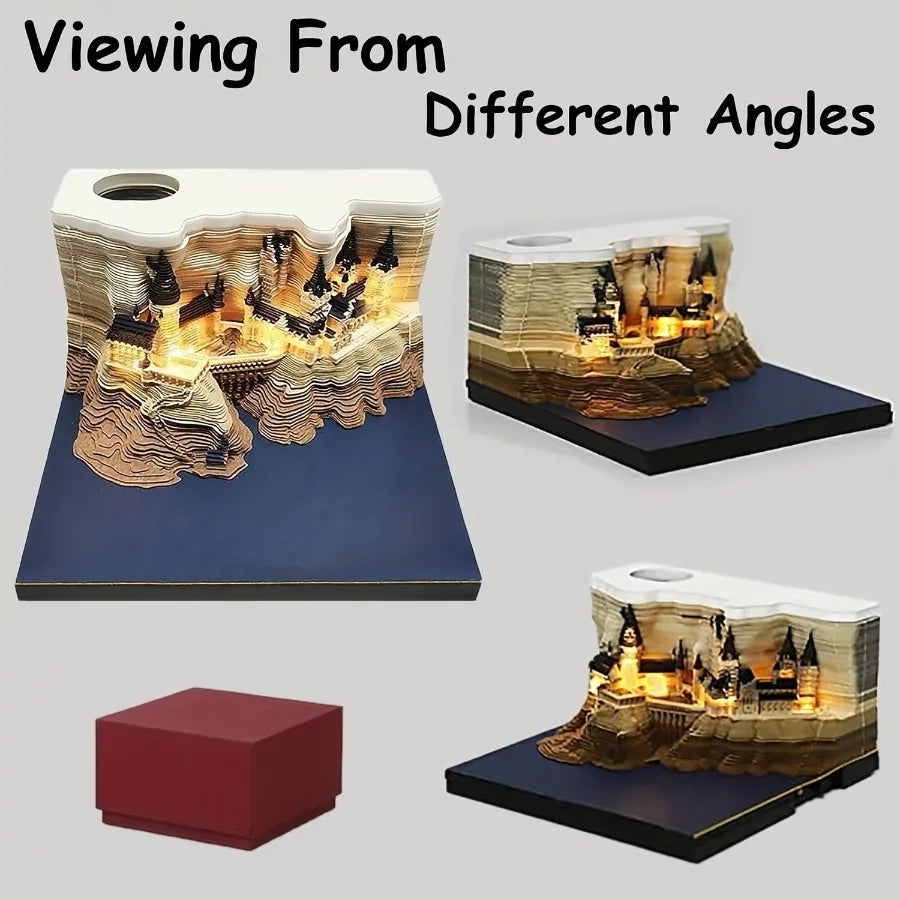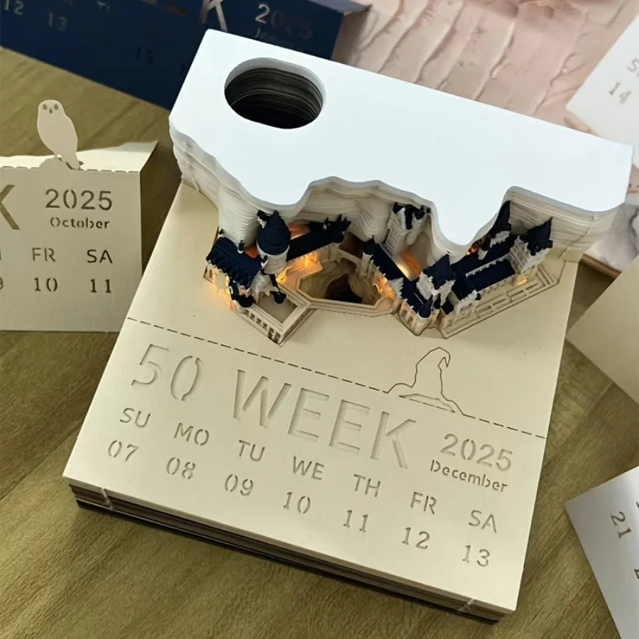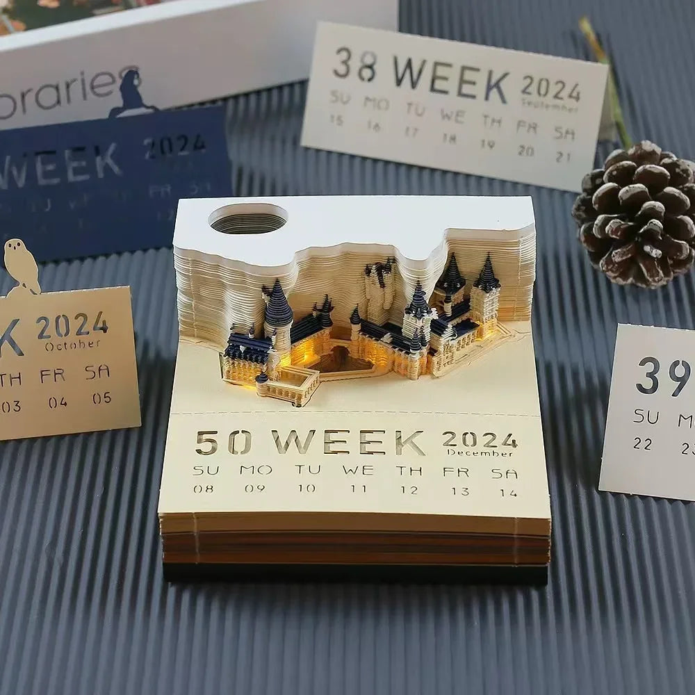 2025 3D Castle Paper Sculpture Desk Calendar Magic Castle Memo Pad Tear-Away Notepad DIY Craft Gifts for Home Office School