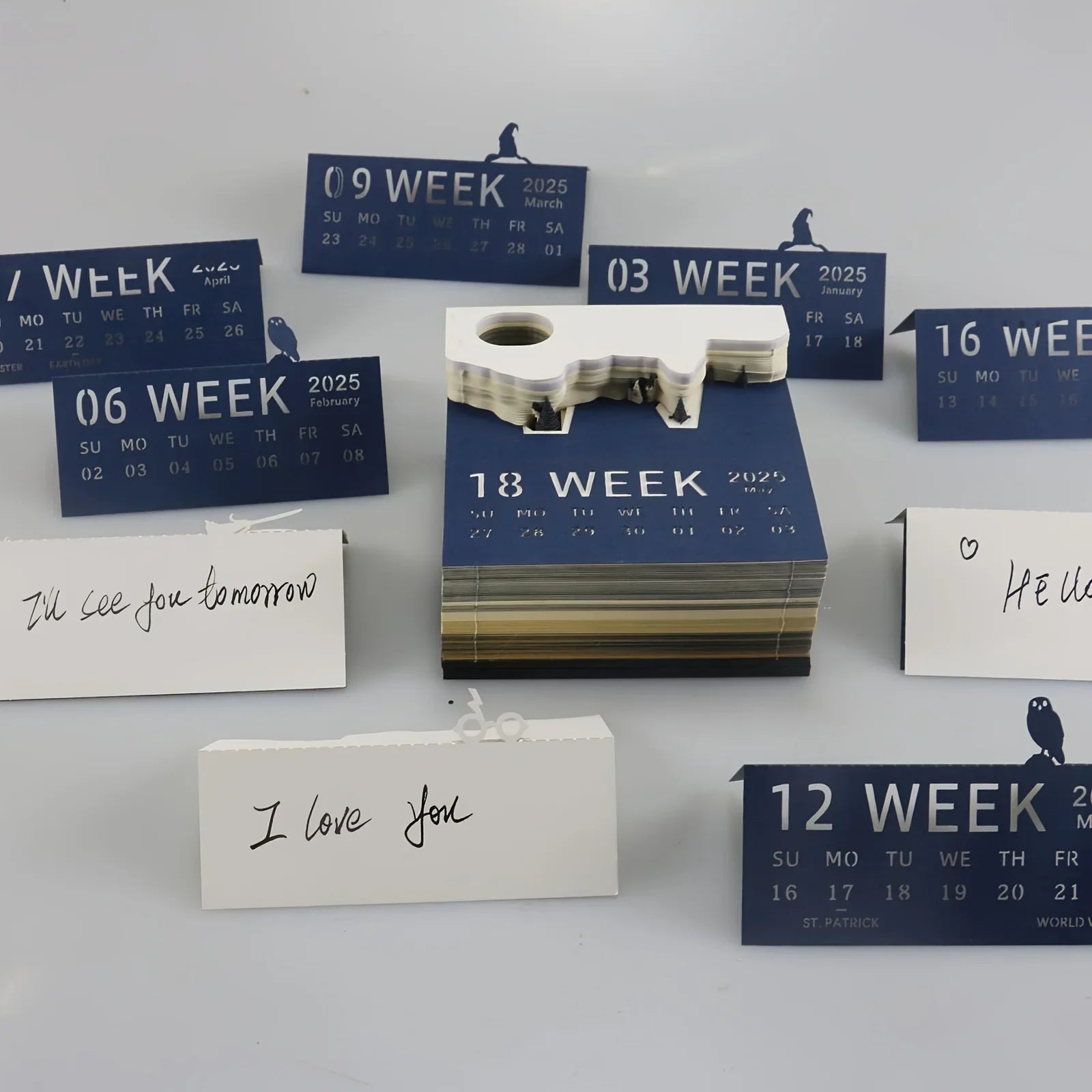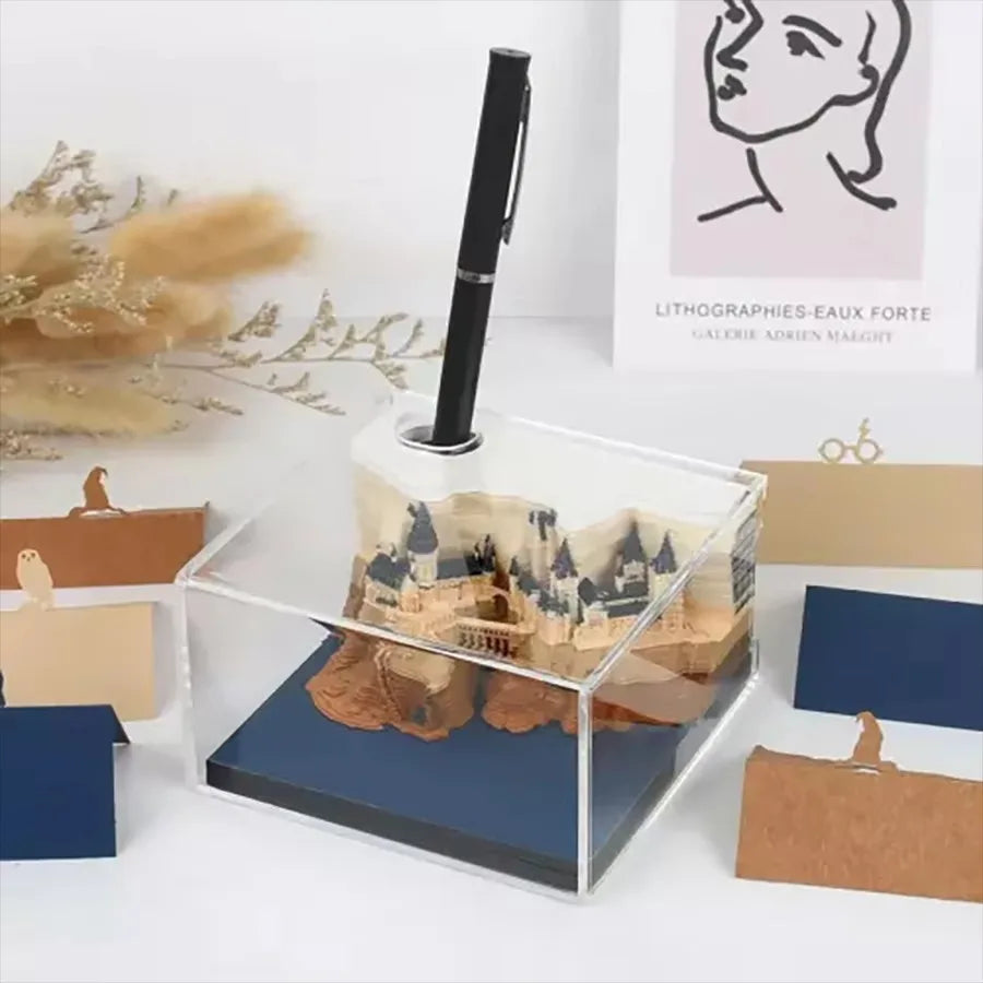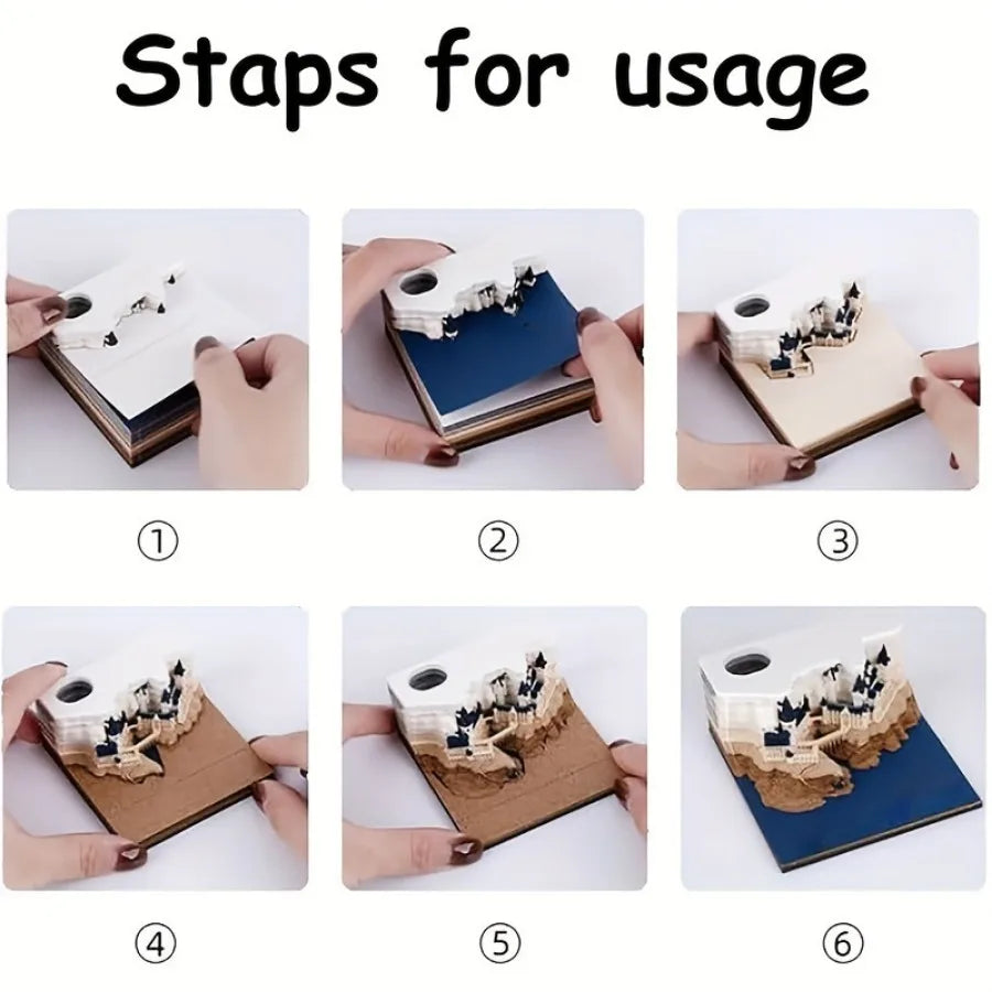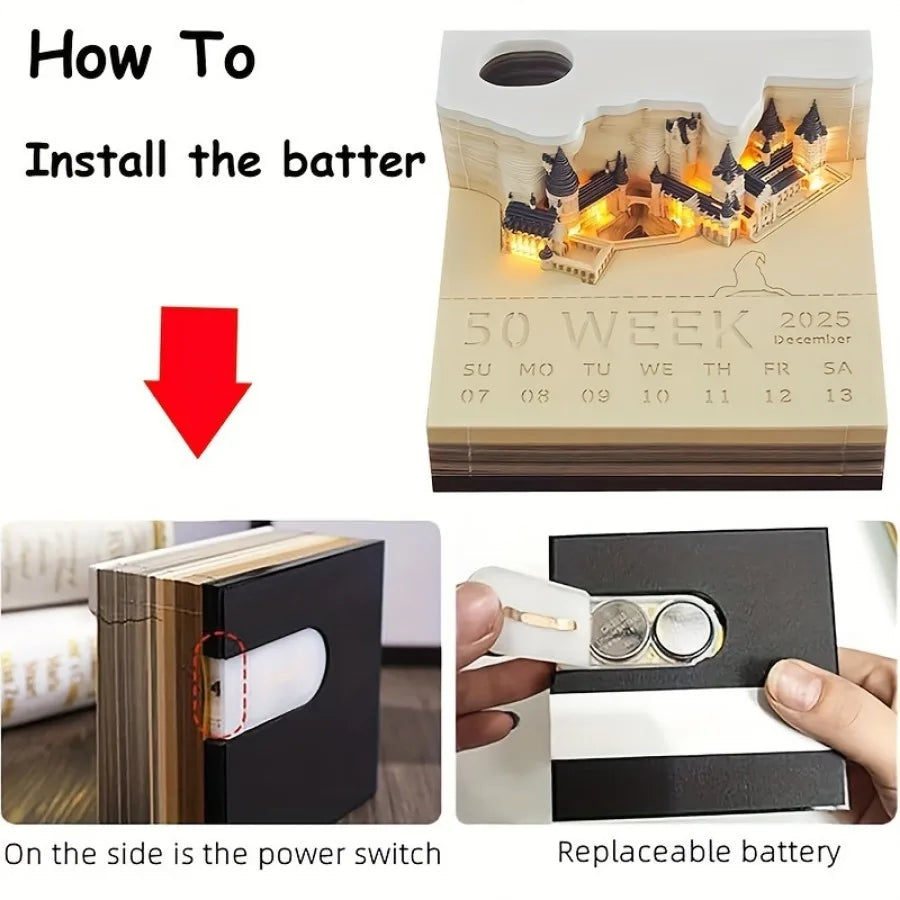 2025 3D Castle Paper Sculpture Desk Calendar Magic Castle Memo Pad Tear-Away Notepad DIY Craft Gifts for Home Office School