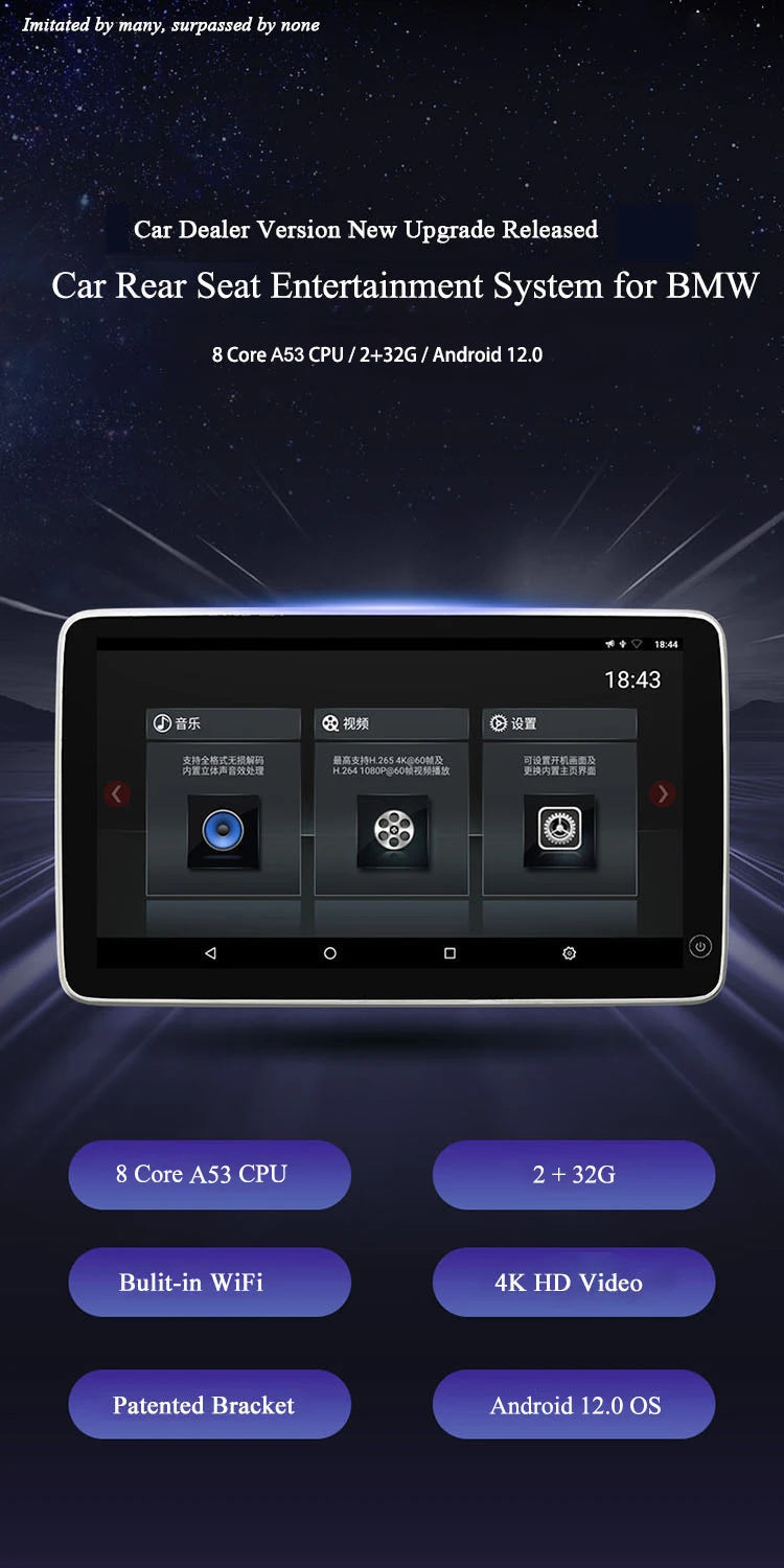 2025 New Android Operation System 4K HD 1080P Car Monitor Back Seat TV Headrest Screens For BMW 5 Series WIFI Rear Entertainment