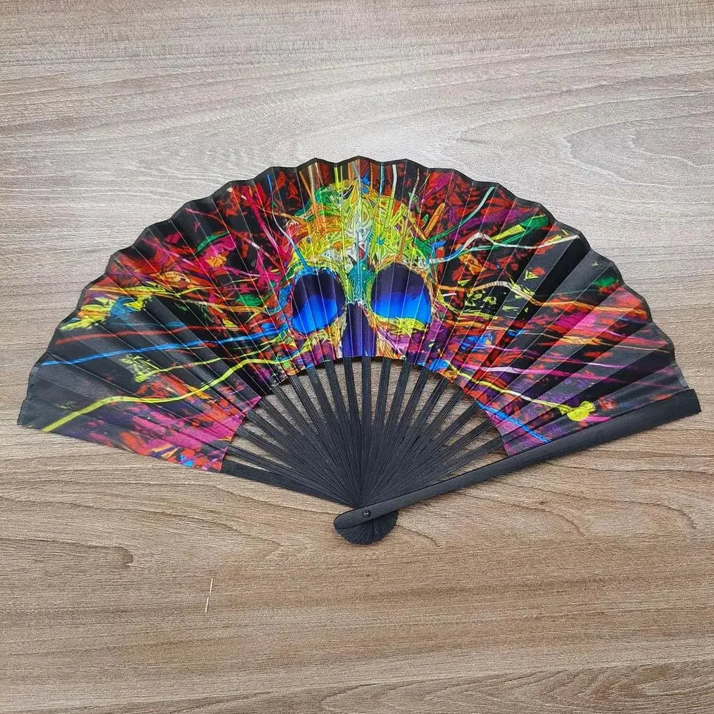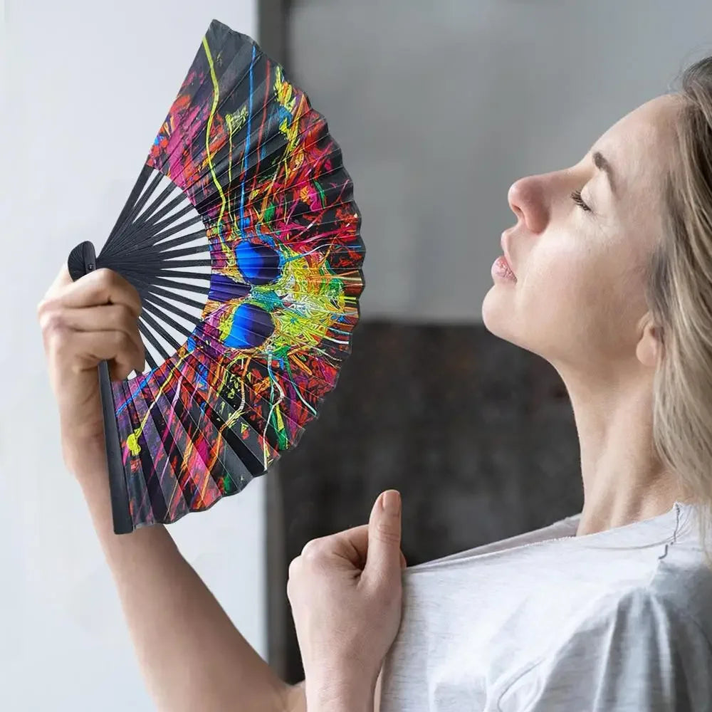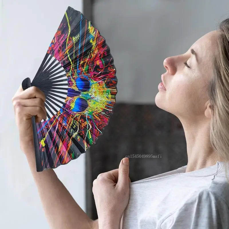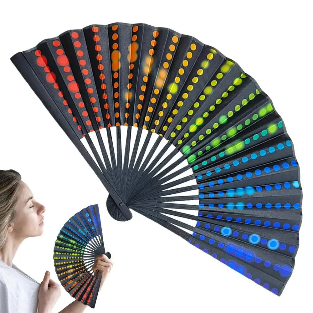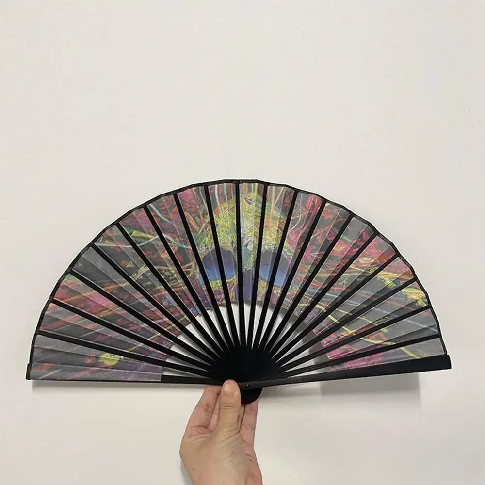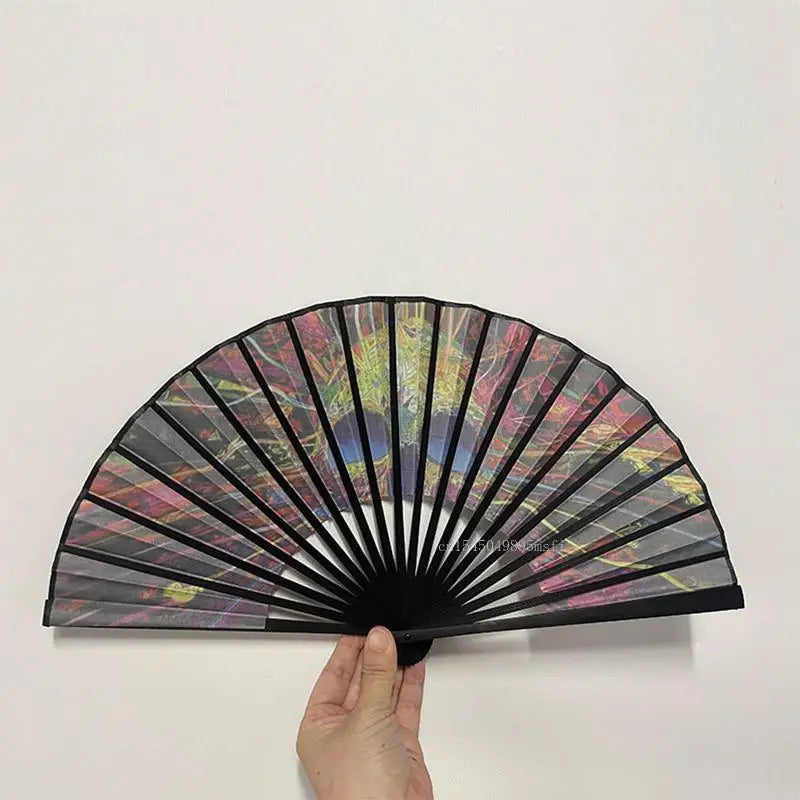 23cm Classics Folding Fan Hand Fans Rainbow Print Black Bamboo Bone Fan Cooling Handheld Fan Festival Performance Dance Gift