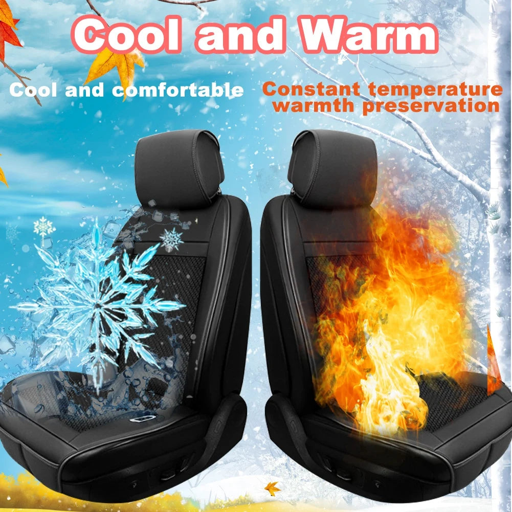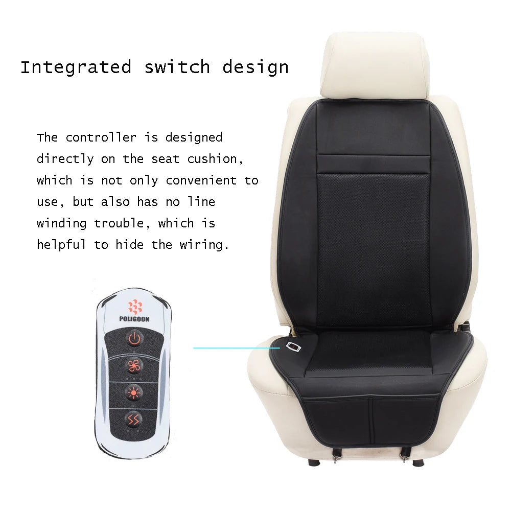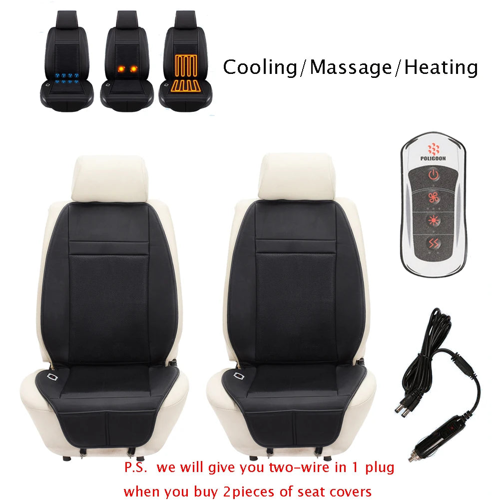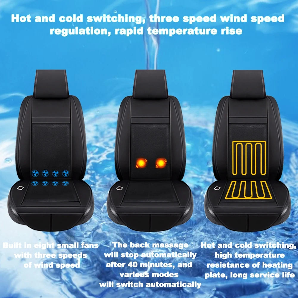 3 Functions 12V Van Car Heater Seat Cover with Waist Vibrating Massage & Cool Wind Heated Warm 4Seasons Interior Accessories x1