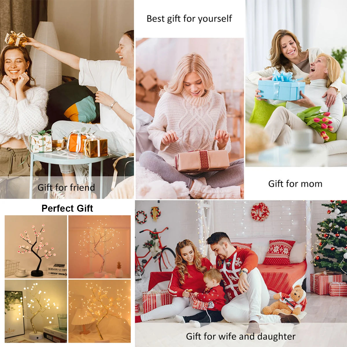 36/72/108 Bonsai Tree Led Lamp Table Usb Room Fairy Bedside Light 8modes Wire Bedroom Tabletop Night Switch Lights Christmas Diy