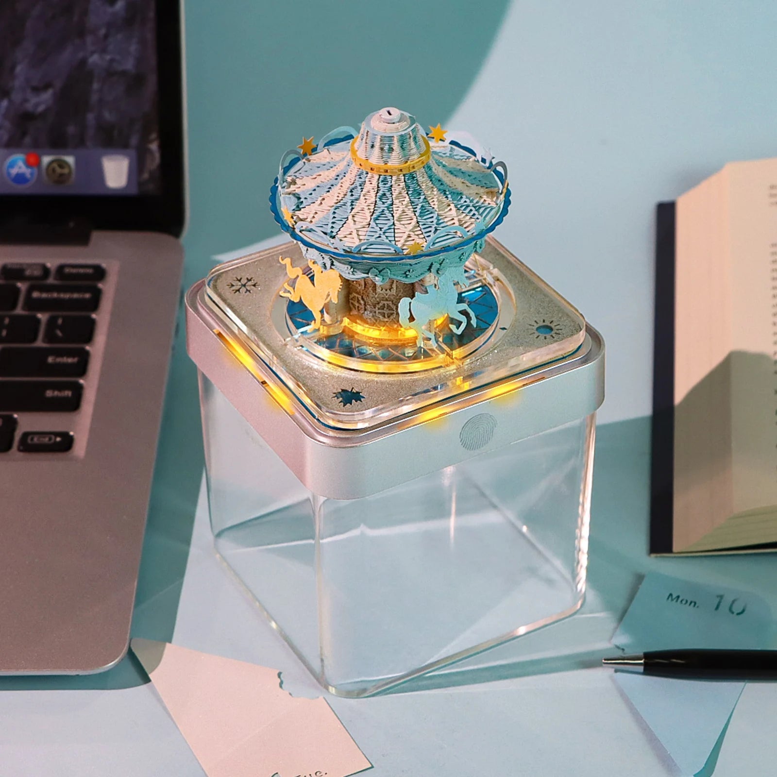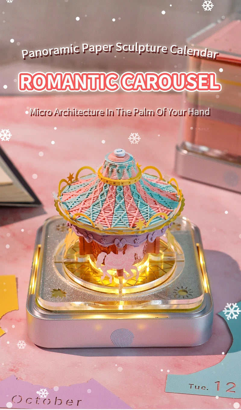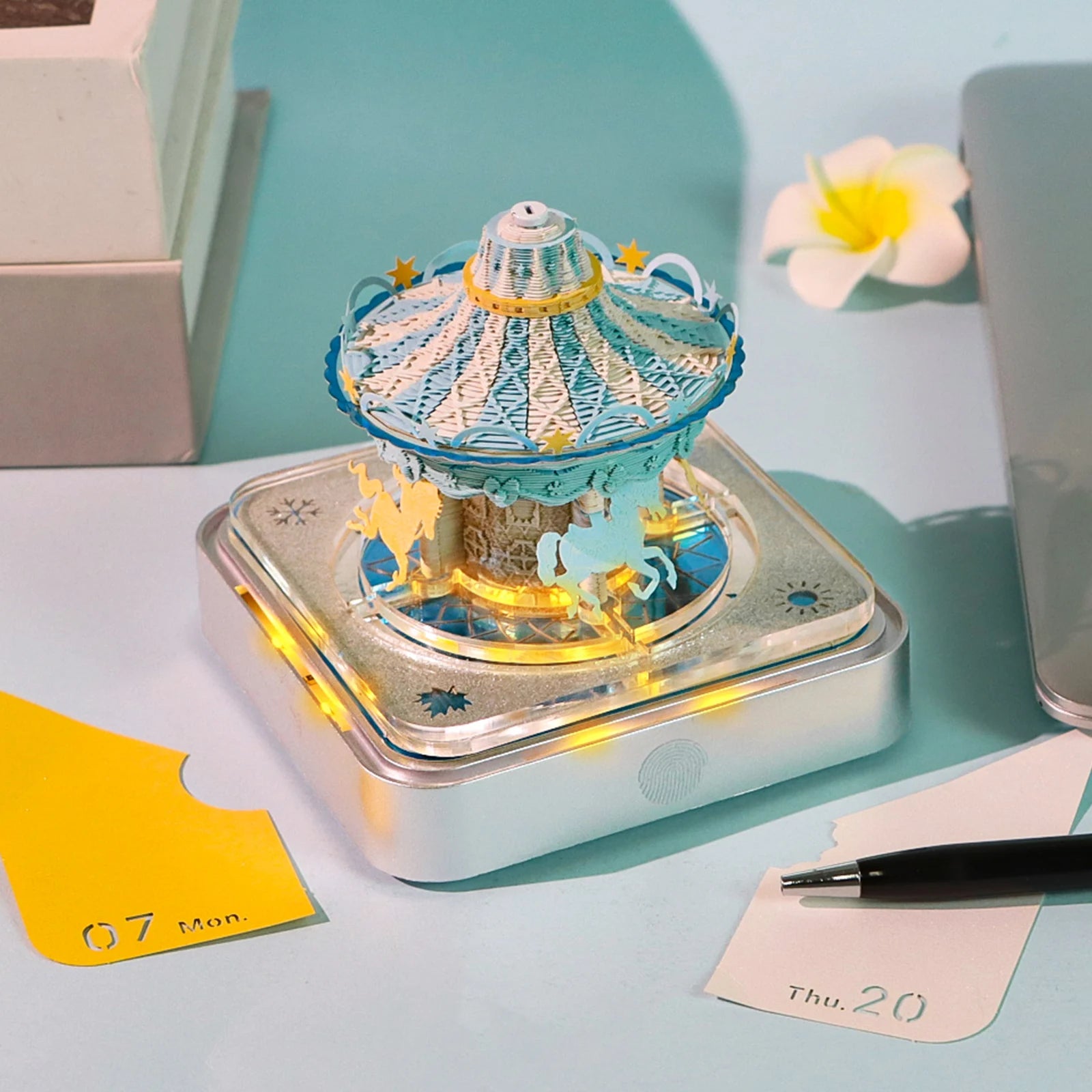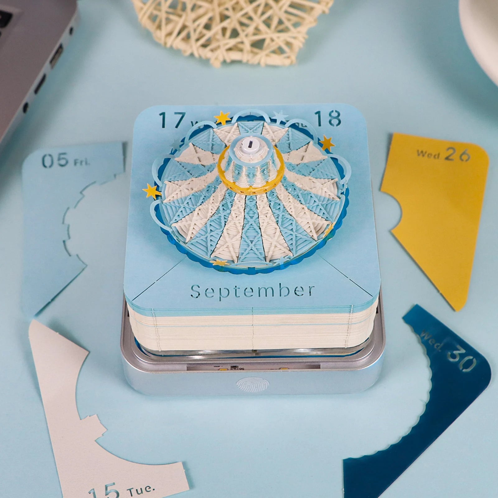 3D Calendar 2025 Memo Pad Omoshiroi Block Carousel Blue Notepad Artistic 3D Paper Art Sculpture Model Desk Ornaments Novel Gift