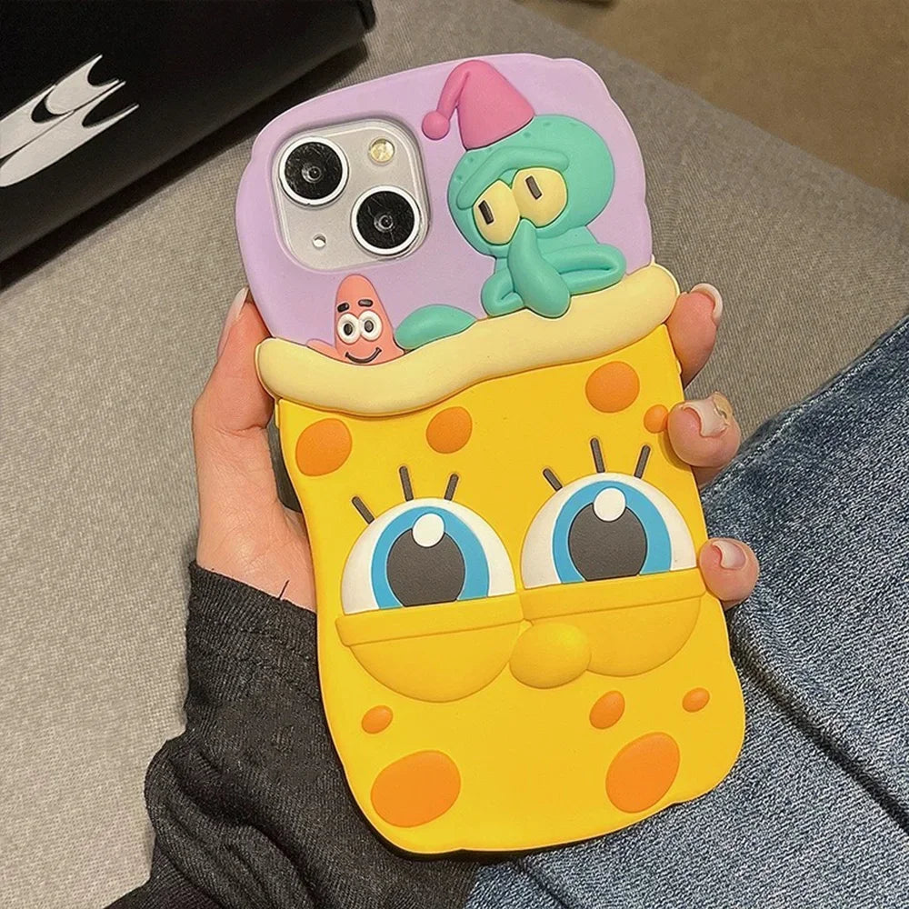 3D Cartoon Cute SpongeBobs SquarePants Patricks Stars Phone Case For IPhone 15 14 13 12 11 Pro Max Soft Silicone Back Cover Gift