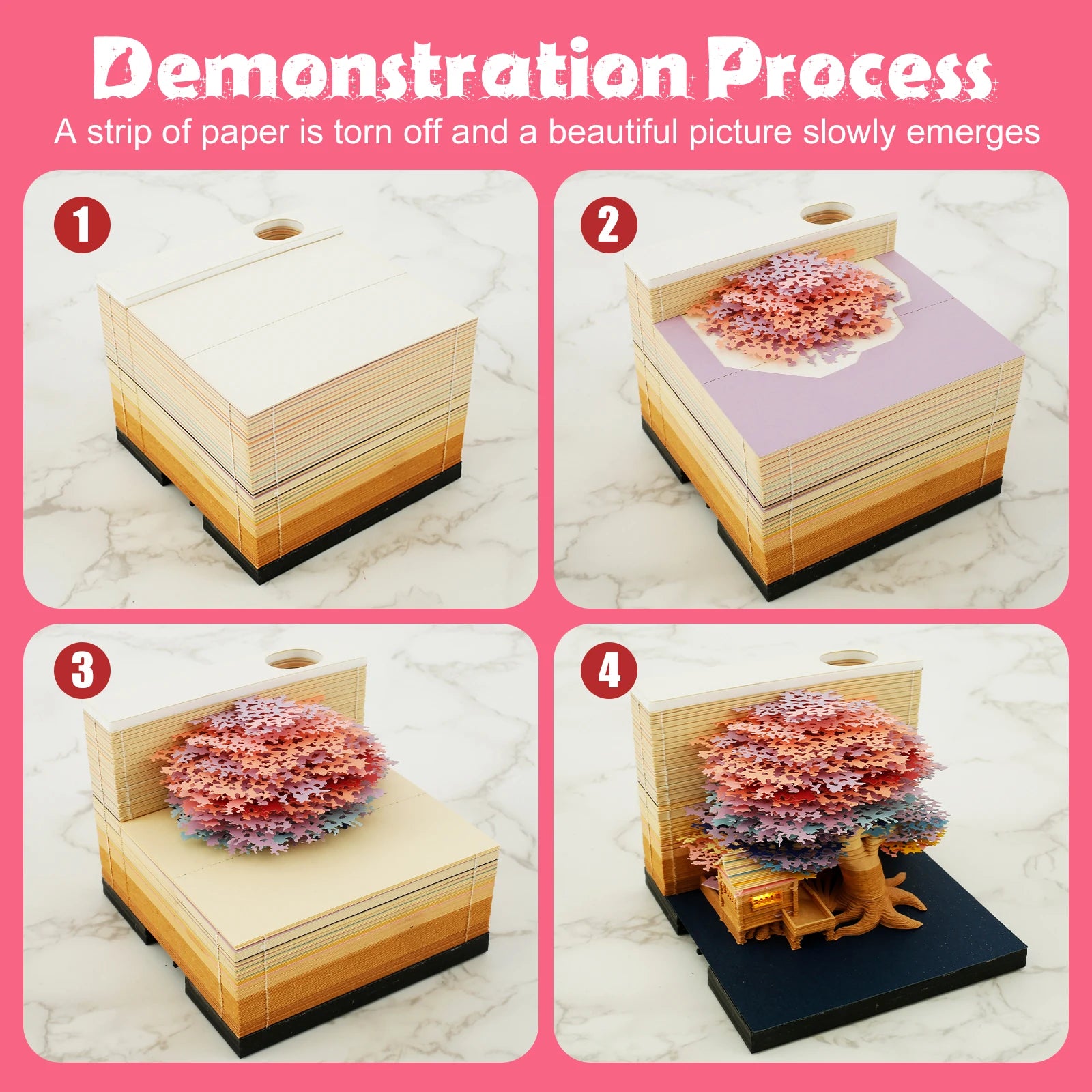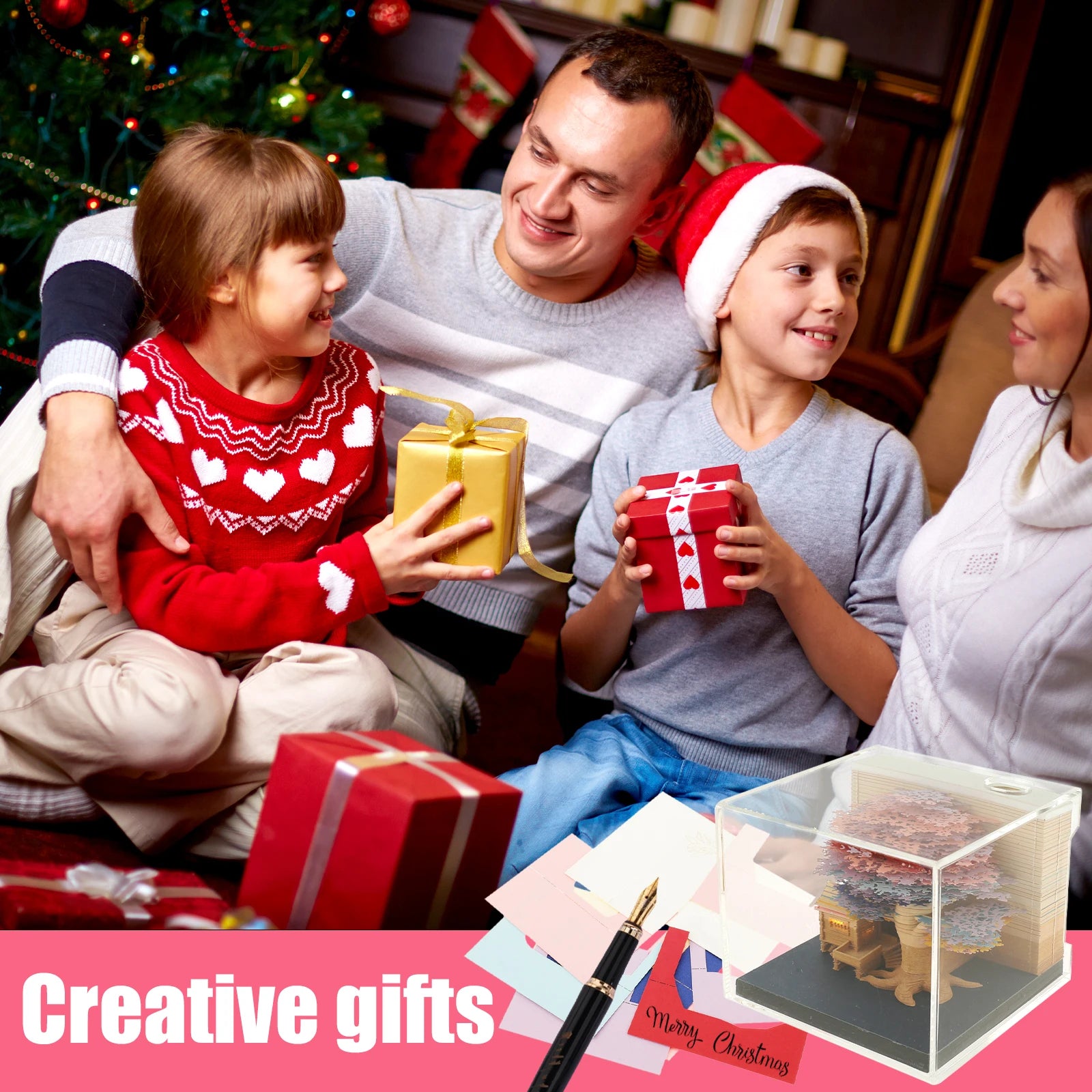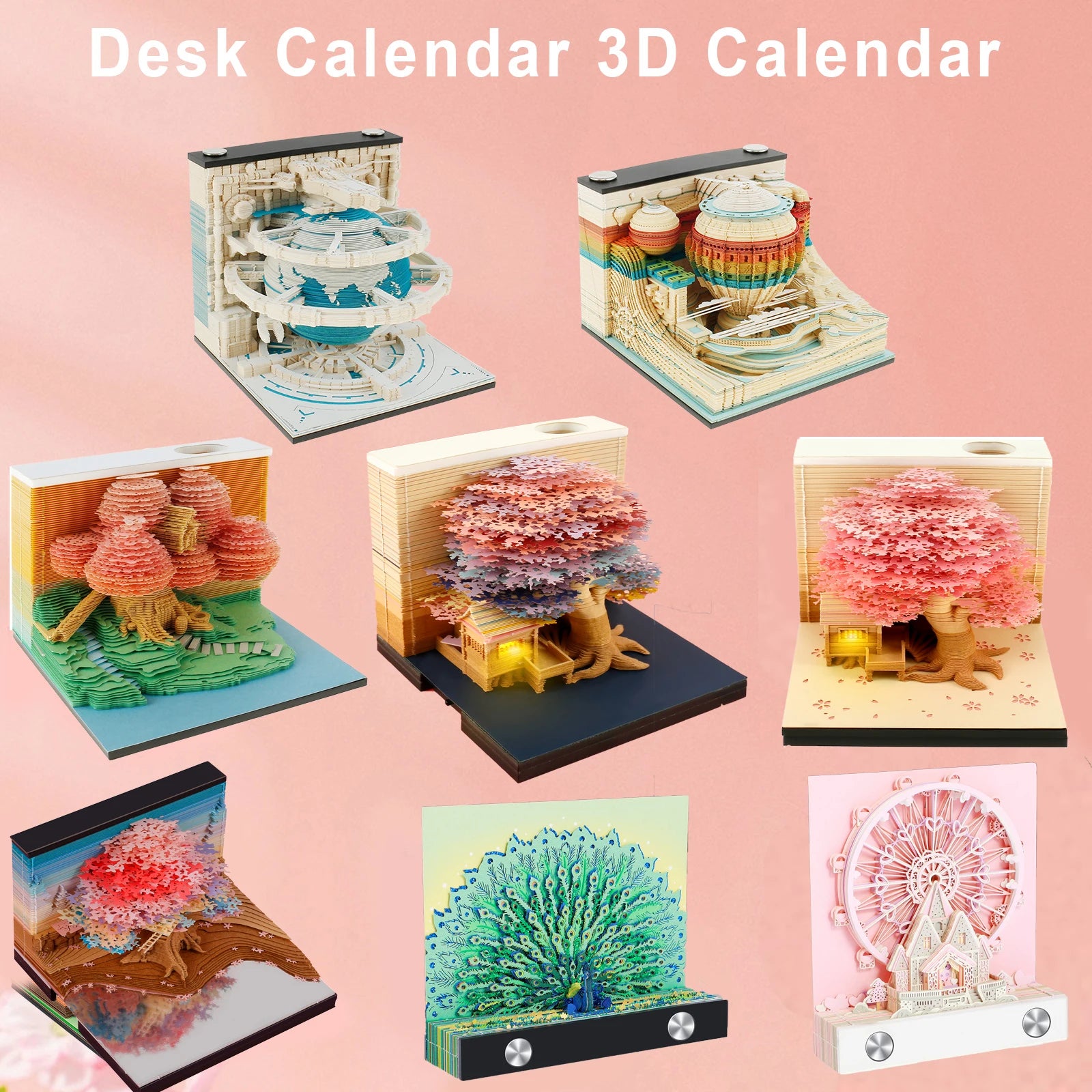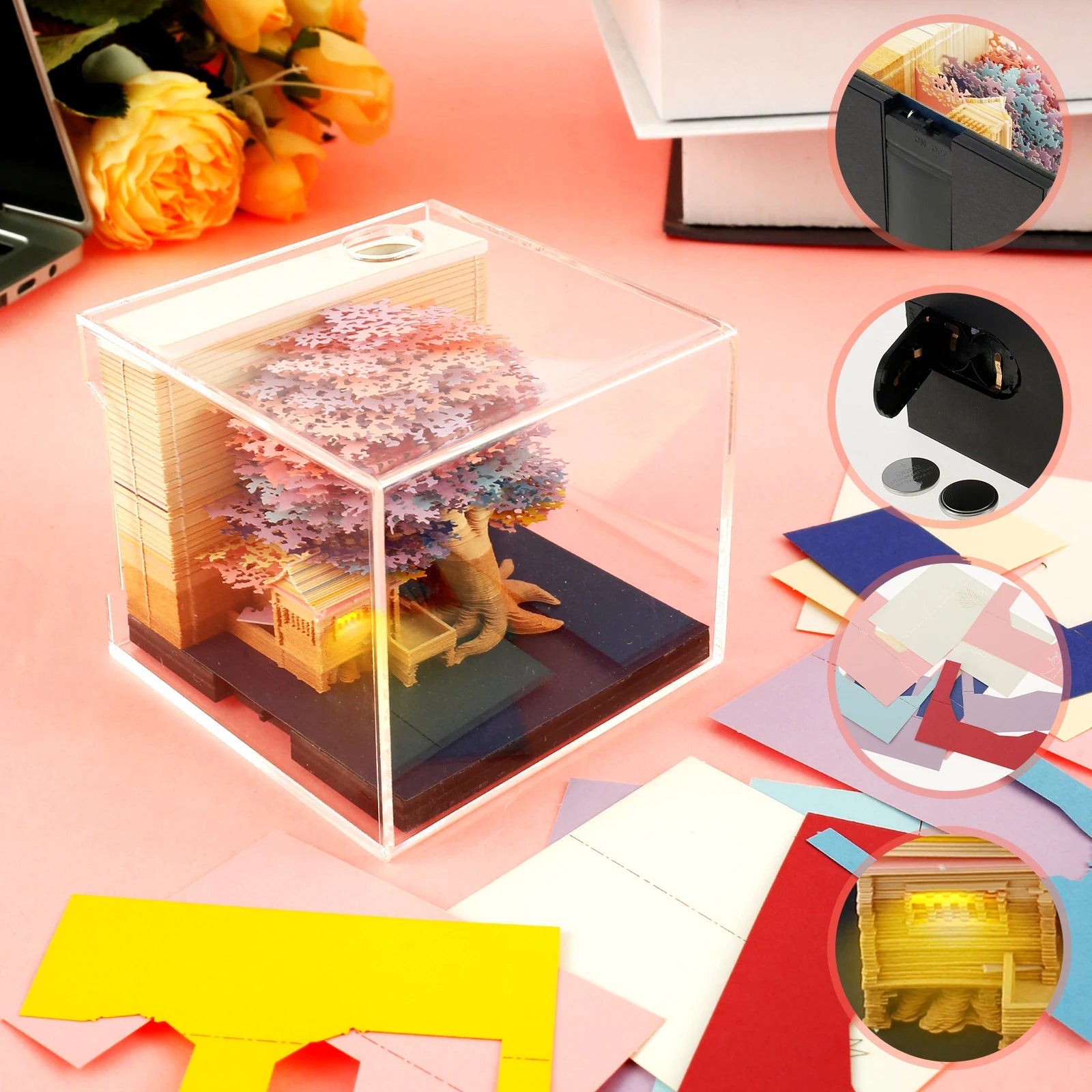 3D Memo Pad Paper Carving Notes 2024 Calendar Memo Pad with LED Light Tear-Away Paper Memo Pad Note Cards Birthday Gift Kids