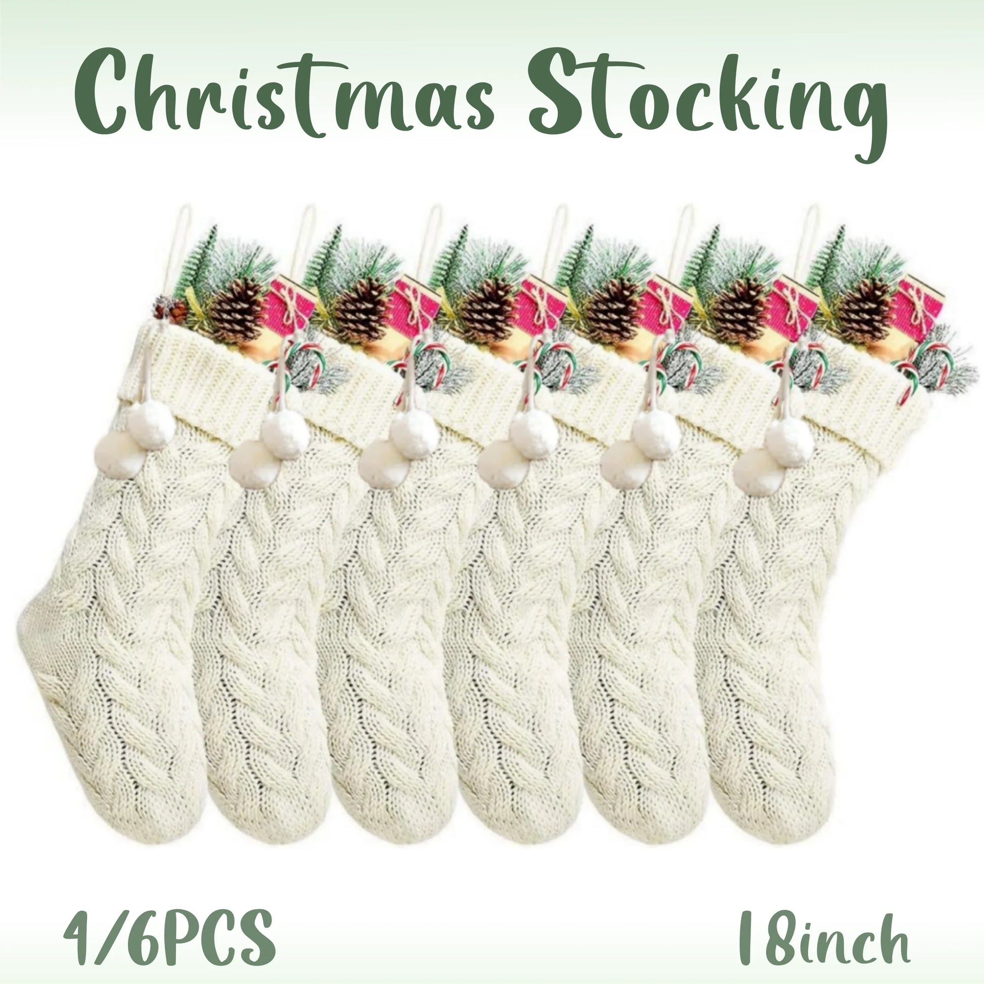 4/6PCS Christmas Stockings Knit Xmas Stockings 18 In Large Fireplace Hanging Stockings For Holiday Christmas Tree Party Decor