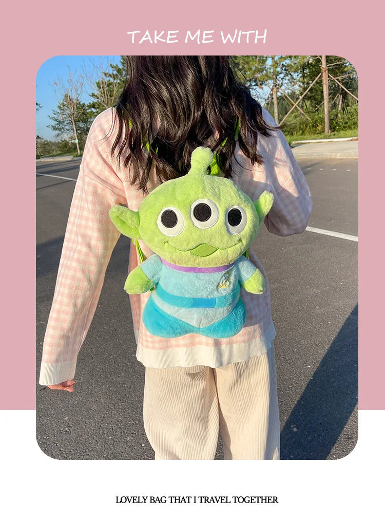 40cm Genuine Disney Toy Story Alien Plush Schoolbag Backpack Kawaii Soft Cartoon Stuffed Toy Child Kawaii Backpacks For Children