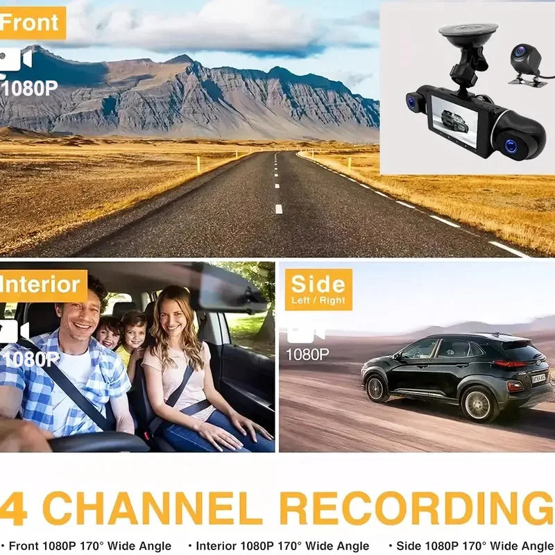 4Channels Car DVR 1080P Video Recorder WIFI APP Dash Cam for Cars Night Vision Rear View camera 24H Hardware Kit Car Assecories