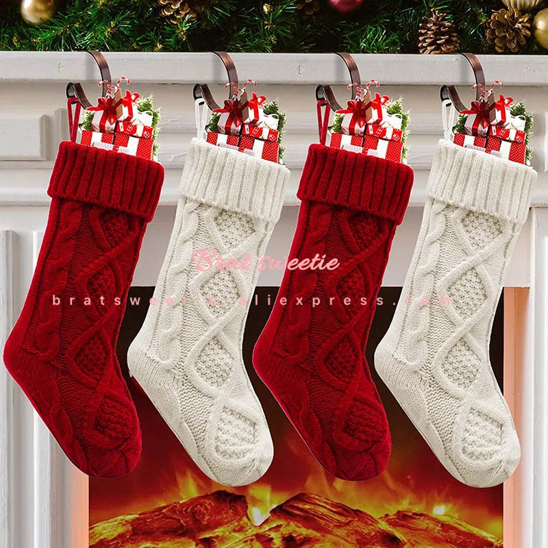 4pcs Christmas Stockings 18 Inches Large Size Cable Knitted Socks Gift Bags Christmas Decorations for Home Xmas Tree Ornaments