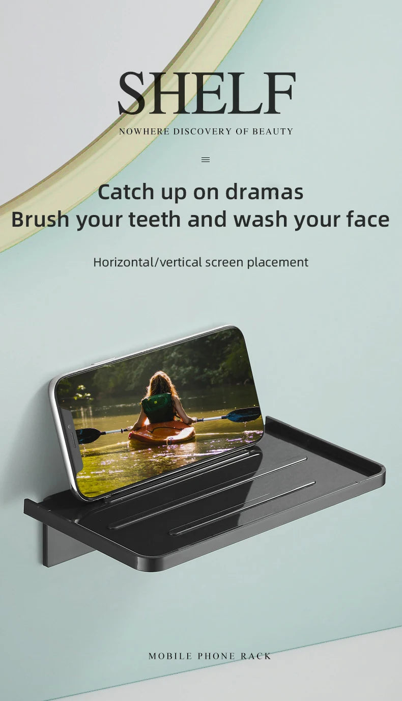 ABS Bathroom Shelf Storage Rack Black Shelves Wall Holder Shower Basket Phone Storage Bathroom Organization WB8011