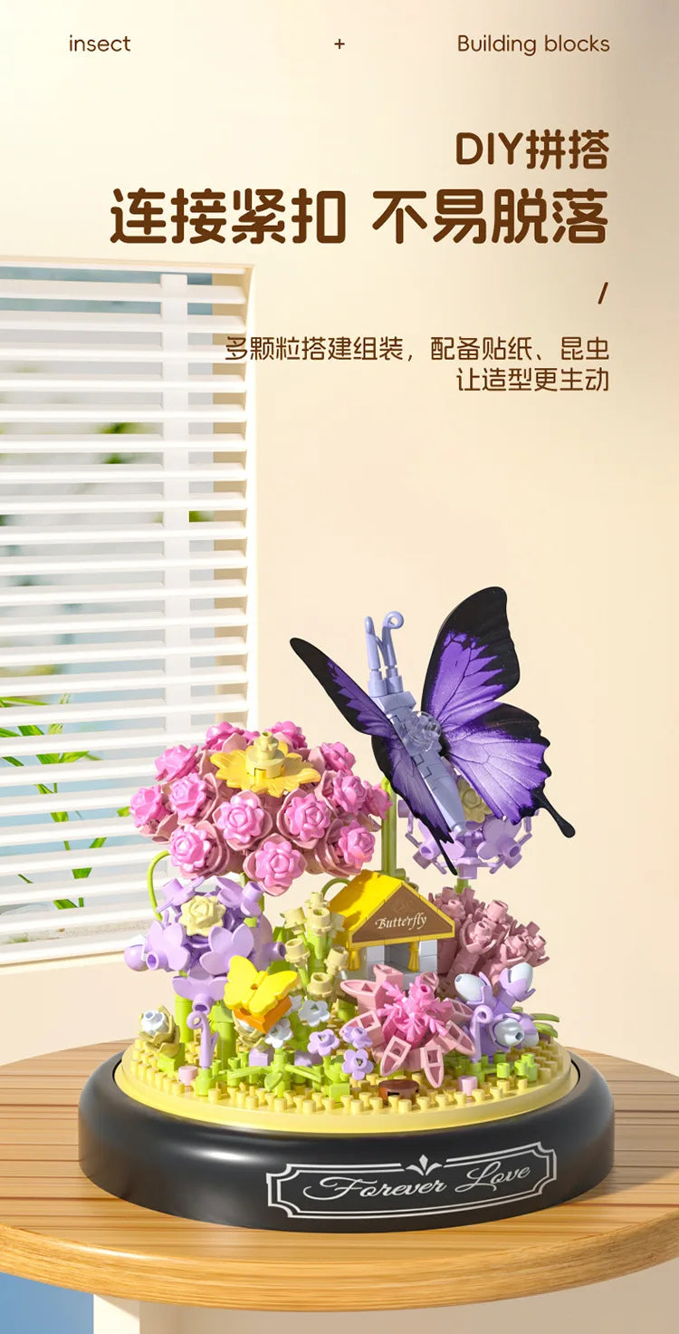 Adults Bouquet Flowers Micro Building Blocks Construction Set for Children Girl 9 to 12 Years Old Animal Insert Mini Bricks Toys