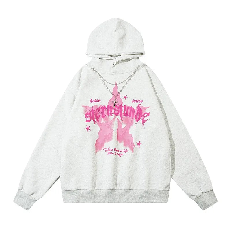 American Street Style Pattern Printed Hooded Sweater Men's and Women's Autumn and Winter Casual Fashion Couple's Coat