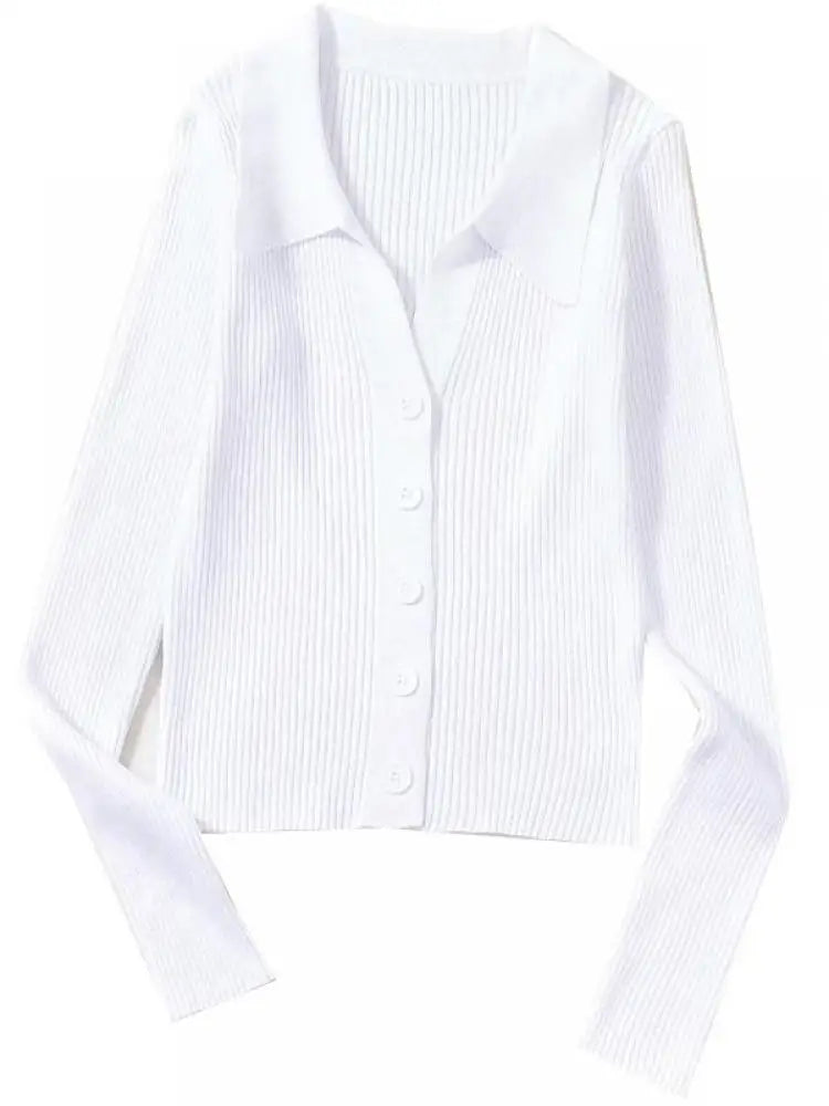 AOSSVIAO 2024 Ladies Buttons Sexy V Neck Long Sleeve POLO Neck Knit Cardigan Sweater Women Lapel Slim Tops