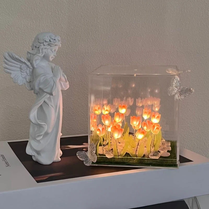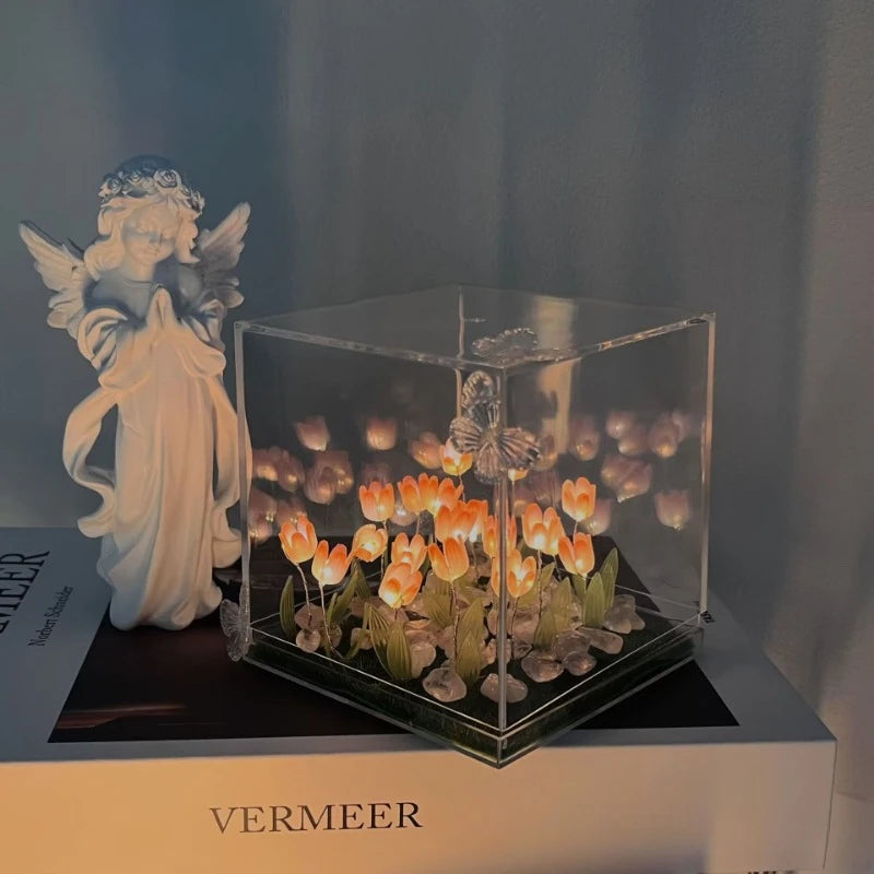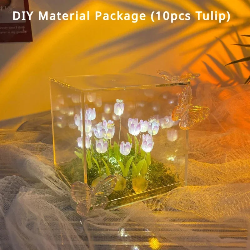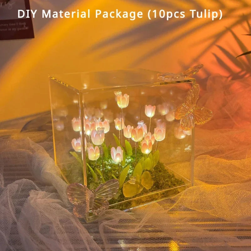 Artificial Tulip Flower Lamp Christmas Gifts Handmade DIY Infinity Tulips Garden Night Light LED Wedding Decor Birthday Gift