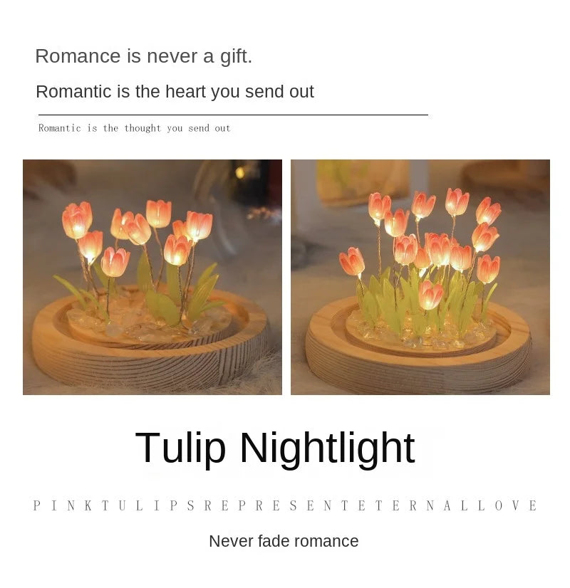 Artificial Tulip Flower Night Light Handmade DIY Bedside Lamp LED Night Lamp Bedroom Decor Christmas Birthday Gifts Table Lamp
