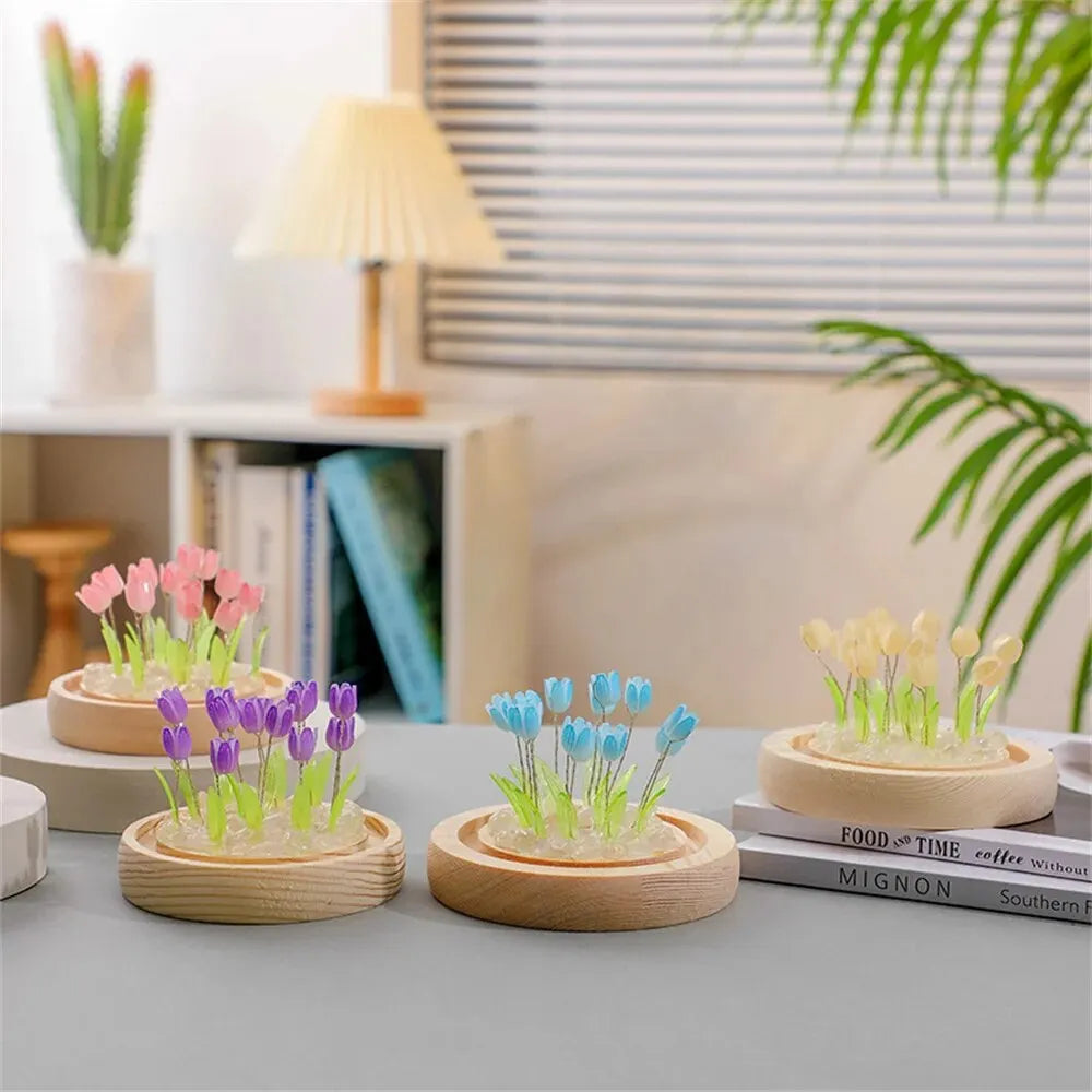 Artificial Tulip Flower Night Light Handmade DIY Bedside Lamp LED Night Lamp Bedroom Decor Christmas Birthday Gifts Table Lamp