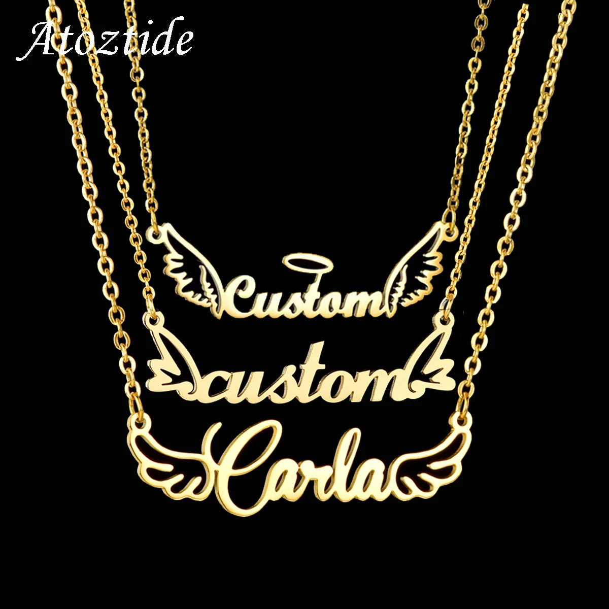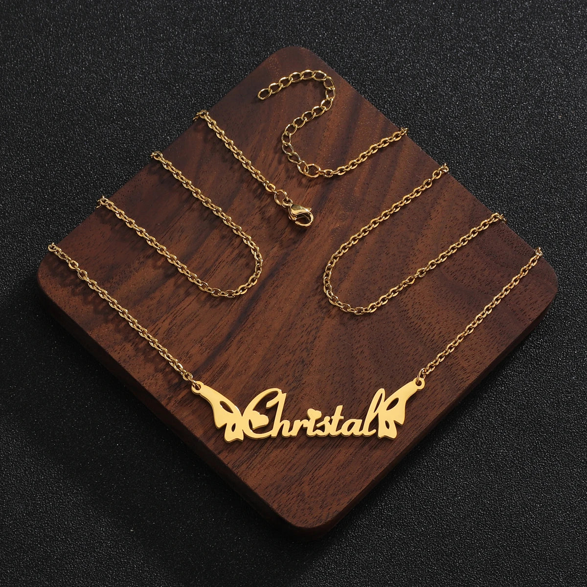 Atoztide New Personalized Custom Name Wing Necklaces Letters Stainless Butterfly Pendant Chain for Women Christmas Jewelry Gift
